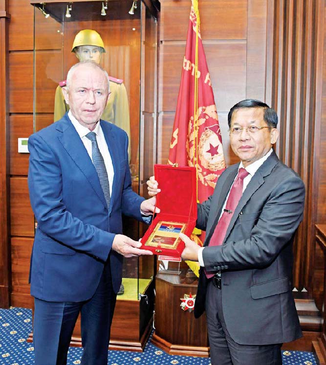တွေ့ဆုံပွဲအပြီးတွင် နိုင်ငံတော်စီမံအုပ်ချုပ်ရေးကောင်စီဥက္ကဋ္ဌ၊ တပ်မတော် ကာကွယ်ရေးဦးစီးချုပ်နှင့် ရုရှားဖက်ဒရေးရှင်းနိုင်ငံ၊ ကာကွယ်ရေးဝန်ကြီးဌာနမှ တာဝန်ရှိသူအကြီးအကဲများသည် အထိမ်းအမှတ်တံဆိပ်နှင့် အမှတ်တရလက်ဆောင် ပစ္စည်းများ အပြန်အလှန်ပေးအပ်ခဲ့ကြကြောင်း သတင်းရရှိသည်။