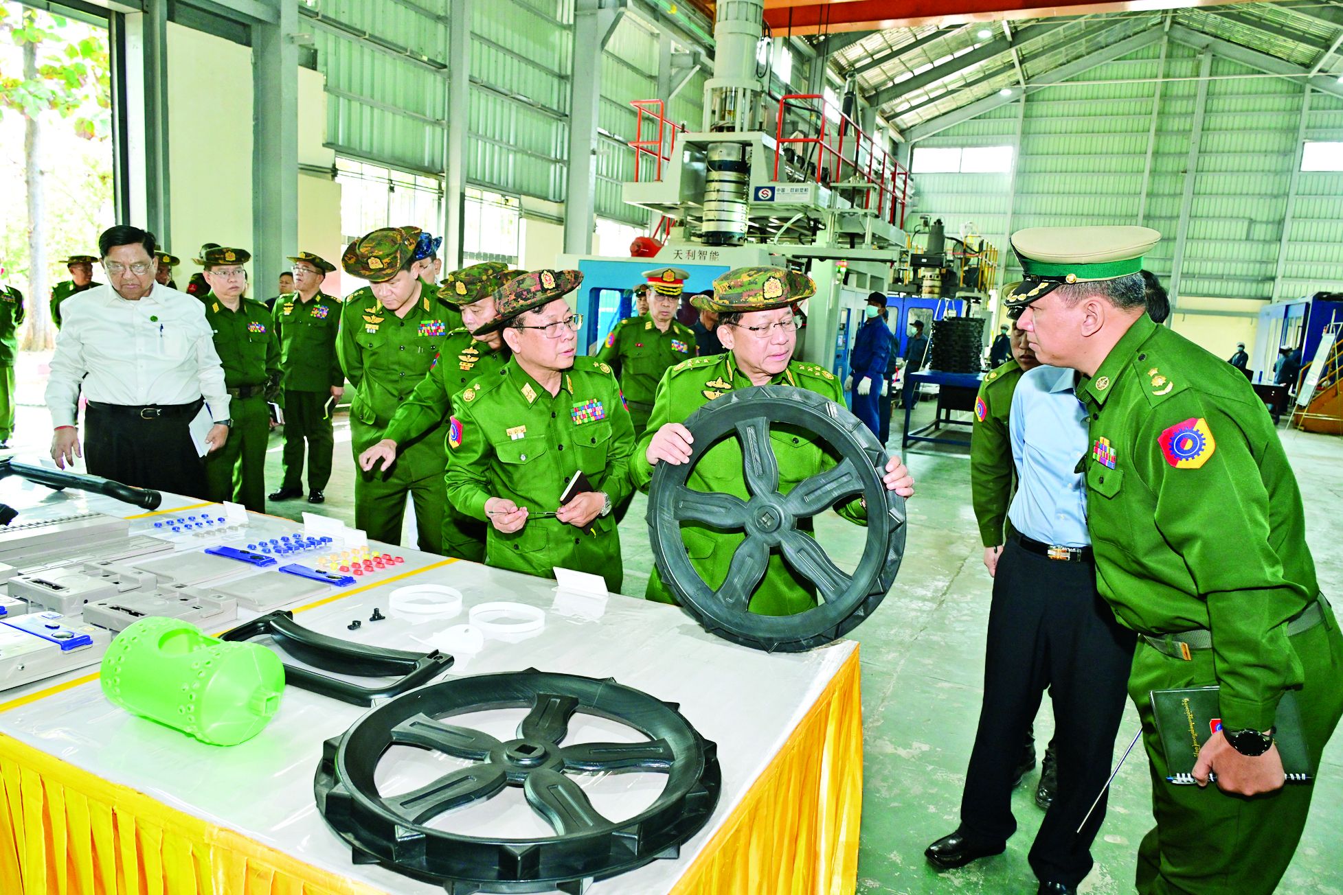 ယင်းနောက် နိုင်ငံတော်လုံခြုံရေးနှင့် အေးချမ်းသာယာရေးကော်မရှင်ဥက္ကဋ္ဌ တပ်မတော် ကာကွယ်ရေး ဦးစီးချုပ်က စက်ရုံဝန်ထမ်းများအတွက် ချီးမြှင့်ငွေများကိုပေးအပ်ရာ စက်ရုံမှူးက လက်ခံရယူခဲ့ ကြောင်း သိရသည်။
