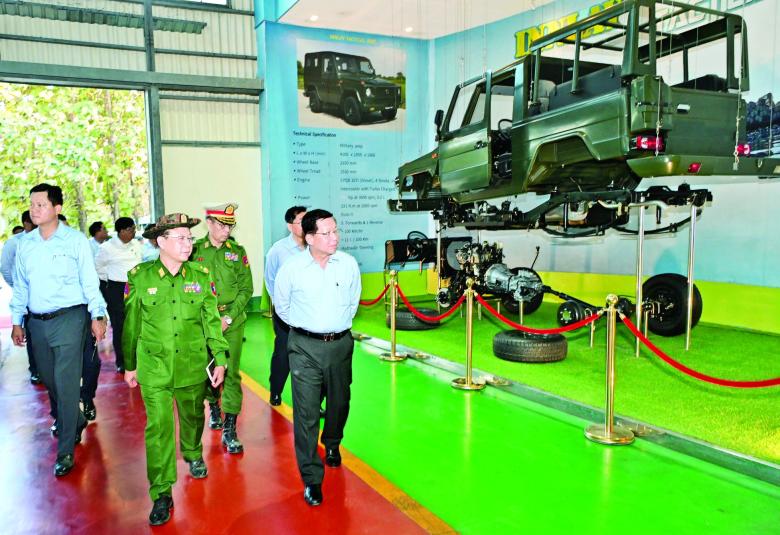 ထို့နောက် နိုင်ငံတော်လုံခြုံရေးနှင့် အေးချမ်းသာယာရေး ကော်မရှင်ဥက္ကဋ္ဌ တပ်မတော်ကာကွယ်ရေး ဦးစီးချုပ်နှင့် အဖွဲ့ဝင်များသည် စက်ရုံအတွင်းရှိ အလုပ်ရုံများအတွင်း မော်တော်ယာဉ်များ ထုတ်လုပ်နေမှု လုပ်ငန်းစဉ်အဆင့်ဆင့်၊ ထုတ်လုပ်ပြီး မော်တော်ယာဉ်များ အားစစ်ဆေး စမ်းသပ်နေမှုနှင့် ထုတ်လုပ်ထားရှိသည့် မော်တော်ယာဉ်များကို လိုက်လံကြည့်ရှုစစ်ဆေးပြီး တာဝန်ရှိသူများ၏ တင်ပြချက်များအပေါ် လိုအပ်သည်များ လမ်းညွှန်မှာကြား ဖြည့်ဆည်း ဆောင်ရွက်ပေးသည်။