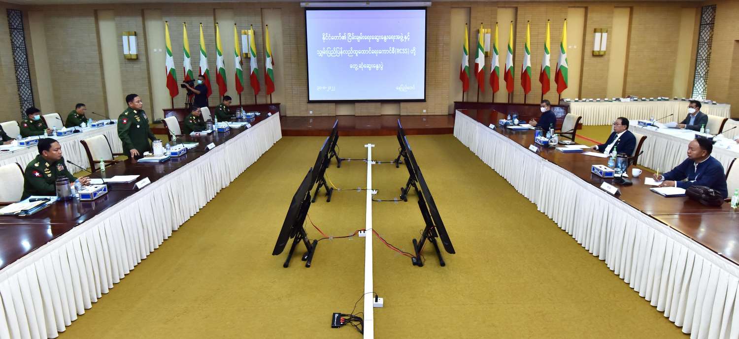 နိုင်ငံတော်၏ ငြိမ်းချမ်းရေး ဆွေးနွေးရေးအဖွဲ့နှင့် သျှမ်းပြည် ပြန်လည်ထူထောင်ရေး ကောင်စီ (RCSS) ဥက္ကဋ္ဌ ဦးဆောင်သော ငြိမ်းချမ်းရေး ကိုယ်စားလှယ်အဖွဲ့တို့ တွေ့ဆုံဆွေးနွေးပွဲကို ယနေ့နံနက်ပိုင်းတွင် နေပြည်တော်ရှိ အမျိုးသားစည်းလုံးညီညွတ်ရေးနှင့် ငြိမ်းချမ်းရေး ဖော်ဆောင်မှုဗဟိုဌာန အစည်းအဝေးခန်းမ၌ ကျင်းပသည်။