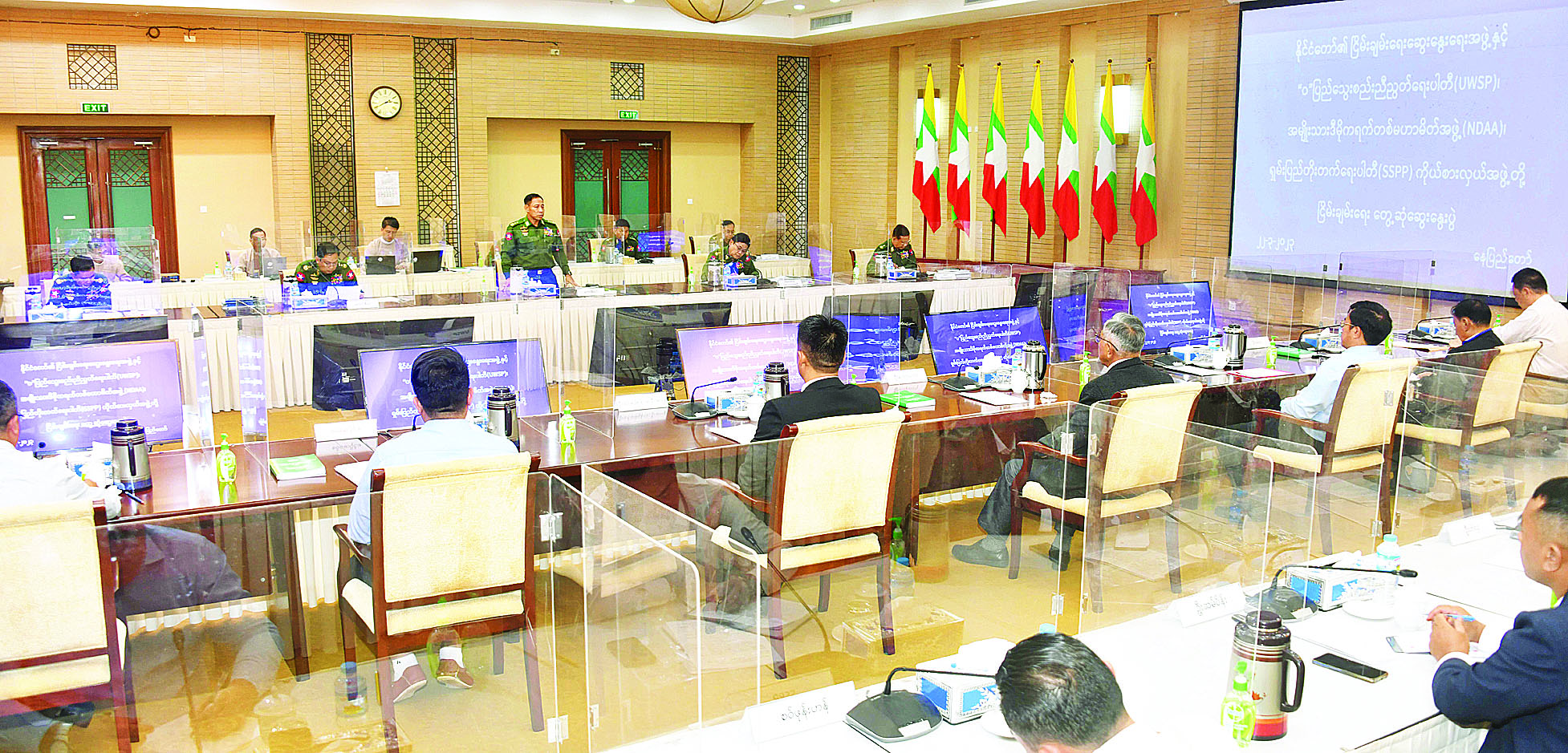 နိုင်ငံတော်၏    ငြိမ်းချမ်းရေး ဆွေးနွေးရေးအဖွဲ့နှင့်   “ဝ” ပြည် သွေးစည်းညီညွတ်ရေးပါတီ (UWSP)၊ အမျိုးသားဒီမိုကရက်တစ် မဟာမိတ်အဖွဲ့(NDAA)နှင့် ရှမ်းပြည်တိုးတက်ရေးပါတီ(SSPP)   ကိုယ်စားလှယ်အဖွဲ့တို့ ငြိမ်းချမ်းရေးတွေ့ဆုံဆွေးနွေးပွဲကို ယနေ့မွန်းလွဲပိုင်းတွင် နေပြည်တော်ရှိ         အမျိုးသား စည်းလုံးညီညွတ်ရေးနှင့် ငြိမ်းချမ်းရေးဖော်ဆောင်မှု ဗဟိုဌာန၌ ကျင်းပပြုလုပ်ရာ     နိုင်ငံတော် စီမံအုပ်ချုပ်ရေးကောင်စီအဖွဲ့ဝင်၊ ပြည်ထောင်စုအစိုးရအဖွဲ့ရုံး ဝန်ကြီးဌာန ပြည်ထောင်စု ဝန်ကြီး၊ အမျိုးသားစည်းလုံးညီညွတ်ရေးနှင့်   ငြိမ်းချမ်းရေးဖော်ဆောင်မှု ညှိနှိုင်းရေးကော်မတီ        ဥက္ကဋ္ဌ၊ ငြိမ်းချမ်းရေးဆွေးနွေးရေးအဖွဲ့ ခေါင်းဆောင် ဒုတိယဗိုလ်ချုပ်ကြီး ရာပြည့်က တွေ့ဆုံဆွေးနွေး ပွဲသို့ တက်ရောက်လာကြသည့် UWSP၊ NDAA ၊   SSPP  ငြိမ်းချမ်းရေး ဆွေးနွေးရေး  ကိုယ်စားလှယ် အဖွဲ့ အား   ရင်းရင်းနှီးနှီး   ကြိုဆိုနှုတ်ဆက်သည်။