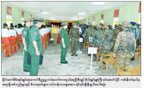 တာဝန်ထမ်းဆောင်မှု အပိုင်းနှင့်ပတ်သက်၍ စစ်သည်တစ်ဦးချင်းအနေဖြင့် စစ်သားပီသစွာ နေထိုင်ကျင့်ကြံရန်လိုပြီး စစ်ရေးအသိ၊ စစ်ရေးသတိအမြဲရှိရန်လိုကြောင်း၊ မည်သည့်လုပ်ငန်းတာဝန်ကို ထမ်းဆောင်ရသည်ဖြစ်စေ တပ်မတော်သားတိုင်းသည် စစ်တိုက်နိုင်ရမည်၊ နိုင်ငံတော်ကာကွယ်ရေးတာဝန်များကို ထမ်းဆောင်နိုင်ရမည်ဖြစ်ကြောင်း၊ မိမိတို့ကို သင်ကြားပေးထားသည့် စစ်အတတ်ပညာများကို ကျွမ်းကျင်ပိုင်နိုင်ရမည်ဖြစ်ကြောင်း၊ သင်တန်းကျောင်းတွင် စစ်သည်တစ်ဦးချင်း၏ အဆင့်နှင့်လျော်ညီစွာ တတ်မြောက်ရန်လိုအပ်သည့် သက်ဆိုင်ရာ ပညာရပ်အလိုက် အုပ်ချုပ်မှု၊ စစ်ပညာနှင့် ရုံးလုပ်ငန်းများကို သင်ကြားပေးလျက် ရှိကြောင်း၊ လေ့ကျင့်သင်ကြားပေးလိုက်သည့် ပညာရပ်များနှင့် အတွေ့အကြုံများကိုပေါင်းစပ်၍ စစ်သားကောင်းပီသသည့် စိတ်ဓာတ်ဖြင့် ဆောင်ရွက်နိုင်ရန်လိုကြောင်း၊ ယခုသင်တန်းကျောင်းမှ သင်ကြားပေးလိုက်သည့် စစ်ပညာရပ်များသည် တိုက်ပွဲများဆင်နွှဲရာတွင် အောင်မြင်မှုများ ပိုမိုရရှိစေရန်အတွက် သင်ကြားပေးလိုက်ခြင်းဖြစ်ကြောင်း၊ စစ်မြေပြင် တာဝန်ထမ်းဆောင်ချိန်တွင် သင်ကြားပေးလိုက်သည့် ပညာရပ်များကို ထိထိရောက်ရောက် အသုံးချမည်ဆိုပါက ရန်သူကို ထိရောက်စွာချေမှုန်းနိုင်မည်ဖြစ်ပြီး နိုင်ငံတော်ကာကွယ်ရေးနှင့် လုံခြုံရေး တာဝန်များကို ကျေပွန်စွာ ထမ်းဆောင်နိုင်မည်ဖြစ်ကြောင်း၊ တစ်ဦးချင်းတာဝန် ထမ်းဆောင်မှုကို ကျေပွန်စွာထမ်းဆောင် နိုင်ရန် အထောက်အကူပြုစေမည့် ပညာရပ်များကို သင်ကြားပေးနေခြင်းဖြစ်ကြောင်း။