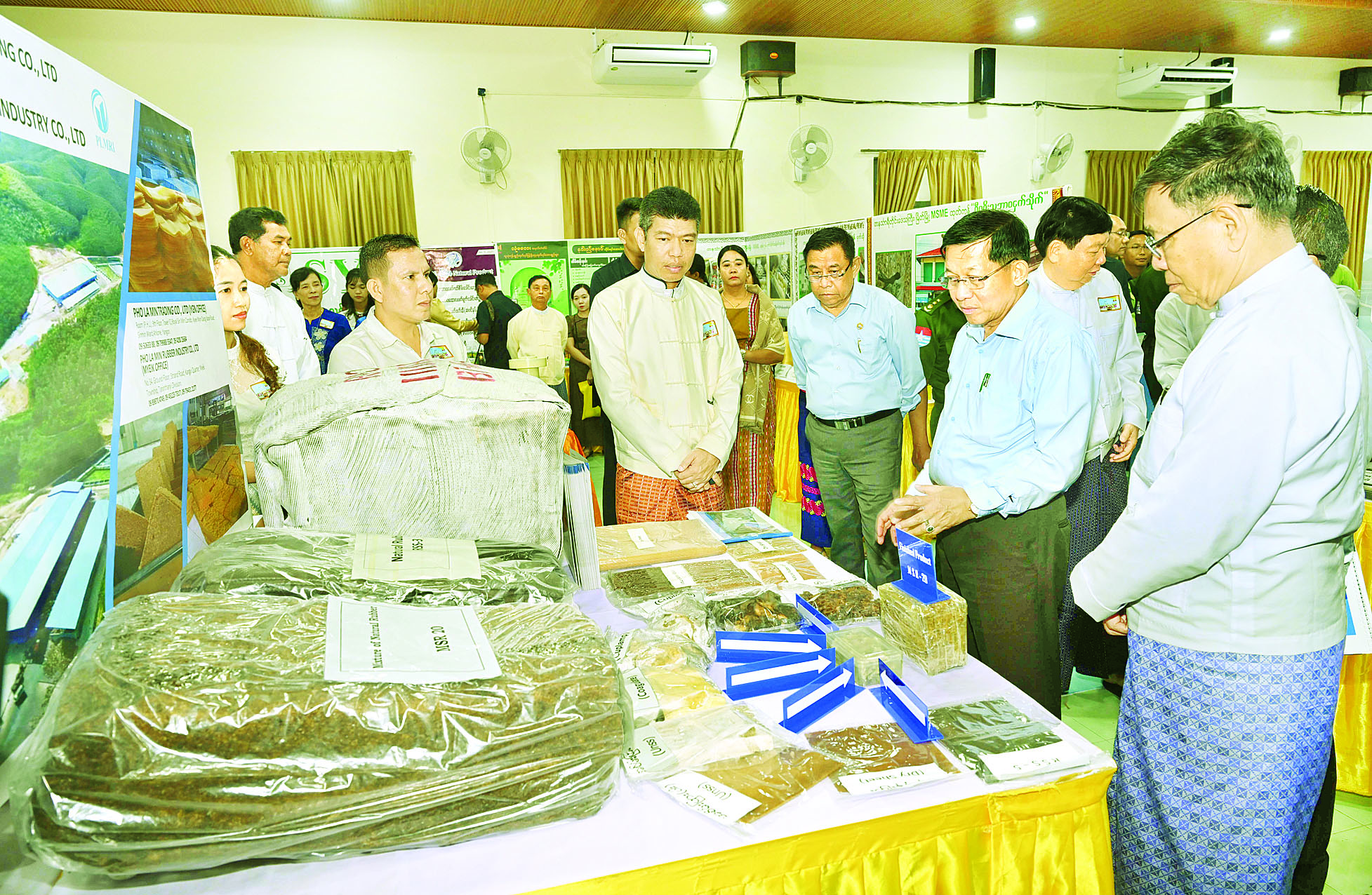 ယင်းနောက် အခမ်းအနားအပြီးတွင် ယာယီသမ္မတ နိုင်ငံတော်လုံခြုံရေးနှင့် အေးချမ်းသာယာရေးကော်မရှင် ဥက္ကဋ္ဌ နှင့် တာဝန်ရှိသူများသည် အခမ်းအနား တက်ရောက်လာကြသူများအား ရင်းရင်းနှီးနှီးနှုတ်ဆက်ခဲ့ပြီး ခင်းကျင်းပြသထားသည့် မြိတ်ခရိုင်အတွင်းမှ MSME ထုတ်ကုန်ပြခန်းများအား ပြခန်းတစ်ခုချင်းစီအလိုက် လေ့လာကြည့်ရှုခဲ့ကြောင်းနှင့် သိရှိလိုသည်များ မေးမြန်းဆွေးနွေးသည်။