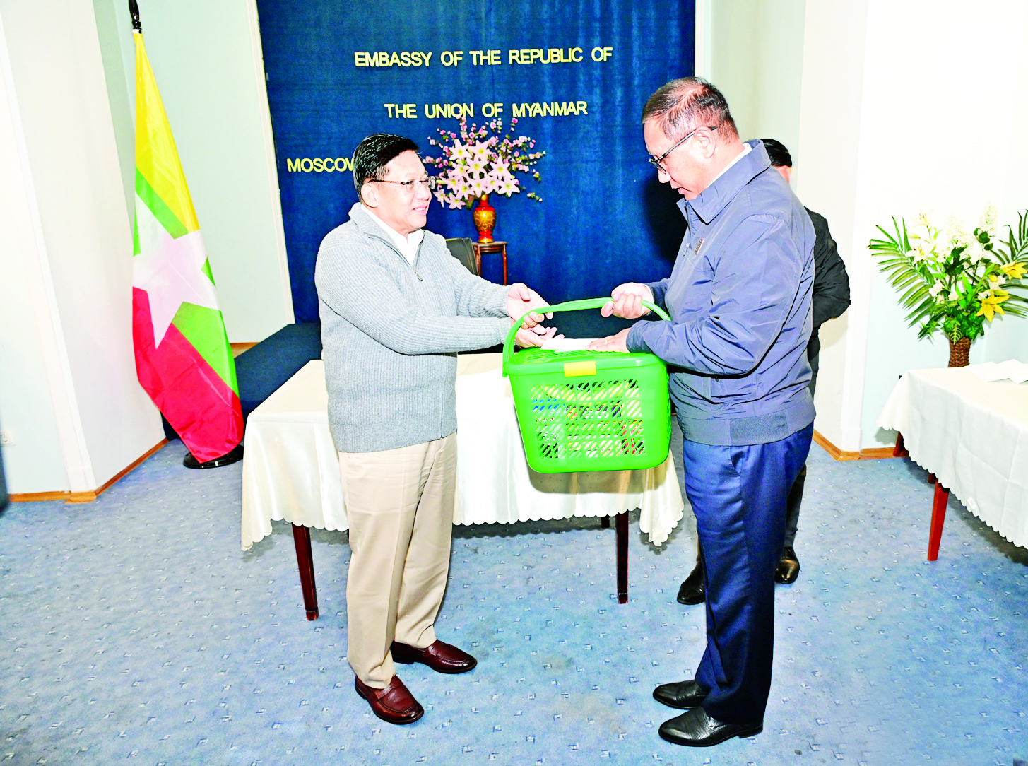 ပြည်ထောင်စုသမ္မတမြန်မာနိုင်ငံတော် ယာယီသမ္မတ နိုင်ငံတော်လုံခြုံရေးနှင့် အေးချမ်းသာယာရေးကော်မရှင် ဥက္ကဋ္ဌ ဗိုလ်ချုပ်မှူးကြီး မင်းအောင်လှိုင် ရုရှားဖက်ဒရေးရှင်းနိုင်ငံဆိုင်ရာ မြန်မာသံရုံး၊ စစ်သံရုံး မိသားစုများ၊ ပညာတော်သင် သင်တန်းသားများအား တွေ့ဆုံအမှာစကားပြောကြား