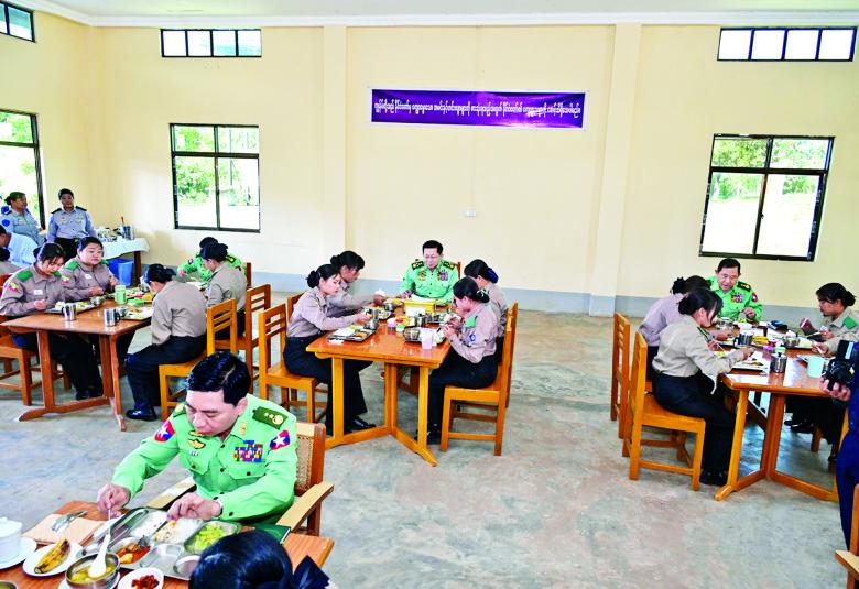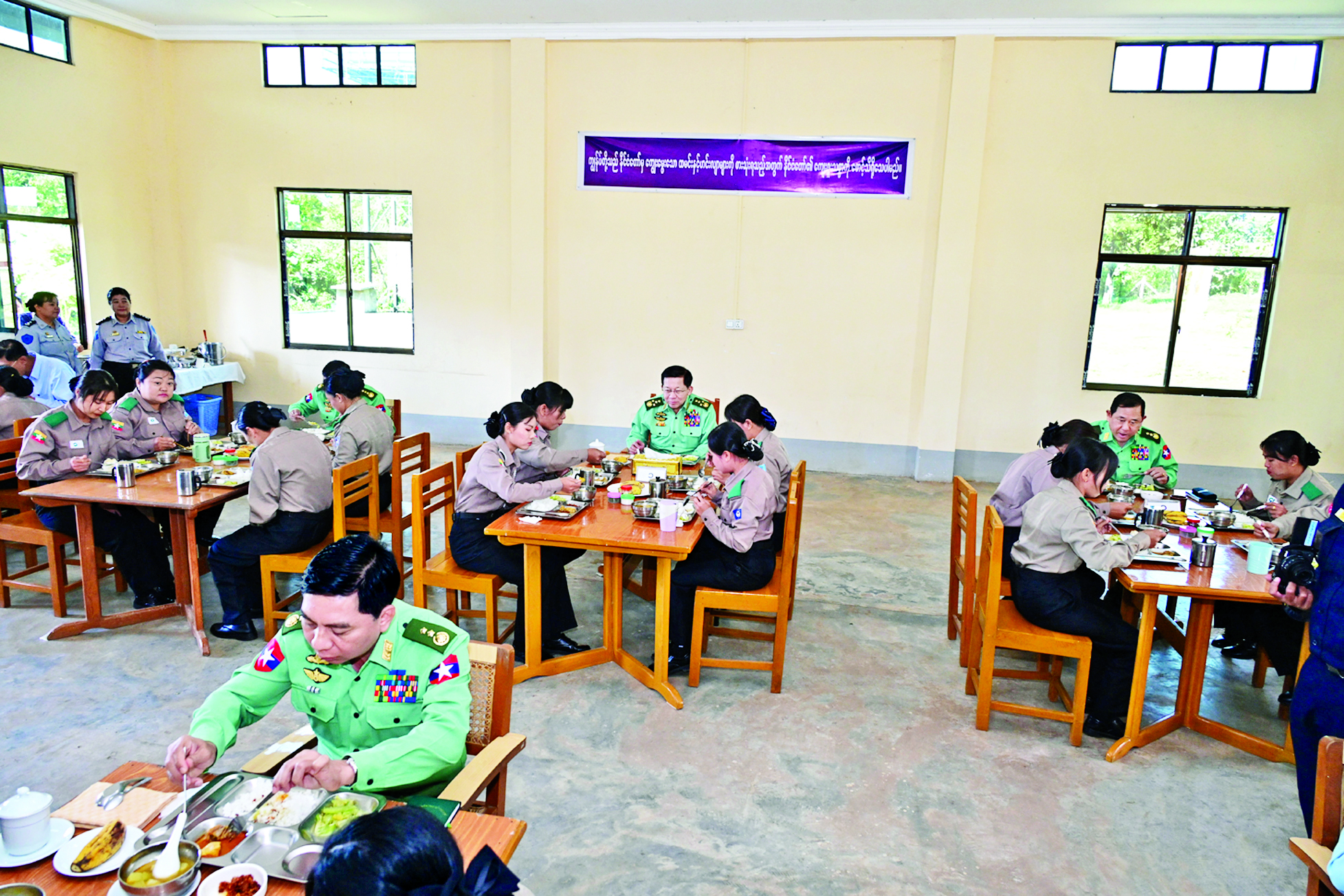 ထို့နောက် နိုင်ငံတော်ယာယီသမ္မတ နိုင်ငံတော်လုံခြုံရေးနှင့် အေးချမ်းသာယာရေးကော်မရှင် ဥက္ကဋ္ဌနှင့် အဖွဲ့ဝင်များသည် ခတ္တာဆောင်ရှိ သင်တန်းသူအိပ်ဆောင်များအား လိုက်လံကြည့်ရှုစစ်ဆေးပြီး စားရိပ်သာ၌ အခြေခံဆရာ ဆရာမ အထူးမွမ်းမံသင်တန်း အမှတ်စဉ် (၈၂) သင်တန်းသူ ဆရာမများနှင့်အတူ နေ့လယ်စာကို အတူတကွ သုံးဆောင်ကြပြီး နေ့လယ်စာသုံးဆောင်အပြီးတွင် သင်တန်းသူ ဆရာမများအား ရင်းရင်းနှီးနှီးနှုတ်ဆက်သည်။
