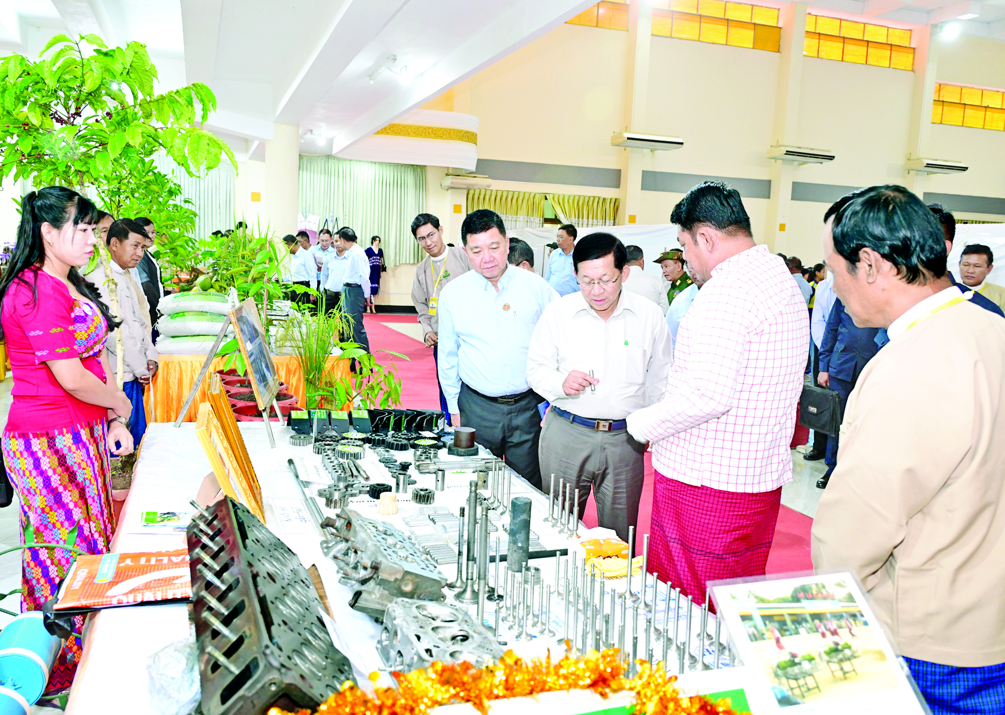 ထို့နောက် နိုင်ငံတော်ယာယီသမ္မတ နိုင်ငံတော်လုံခြုံရေးနှင့် အေးချမ်းသာယာရေးကော်မရှင် ဥက္ကဋ္ဌသည် ခင်းကျင်းပြသထားသည့် မွန်ပြည်နယ်အတွင်းရှိ အသေးစား၊ အငယ်စားနှင့် အလတ်စားစီးပွားရေးလုပ်ငန်းများ (MSME) မှ ထွက်ရှိသည့် ထုတ်ကုန်ပစ္စည်းများအား ပြခန်းတစ်ခုချင်းစီအလိုက် စိတ်ပါဝင်စားစွာ လှည့်လည်ကြည့်ရှုပြီး တာဝန်ရှိသူများ၏ တင်ပြချက်များ အပေါ်လိုအပ်သည်များ လမ်းညွှန်မှာကြားသည်။