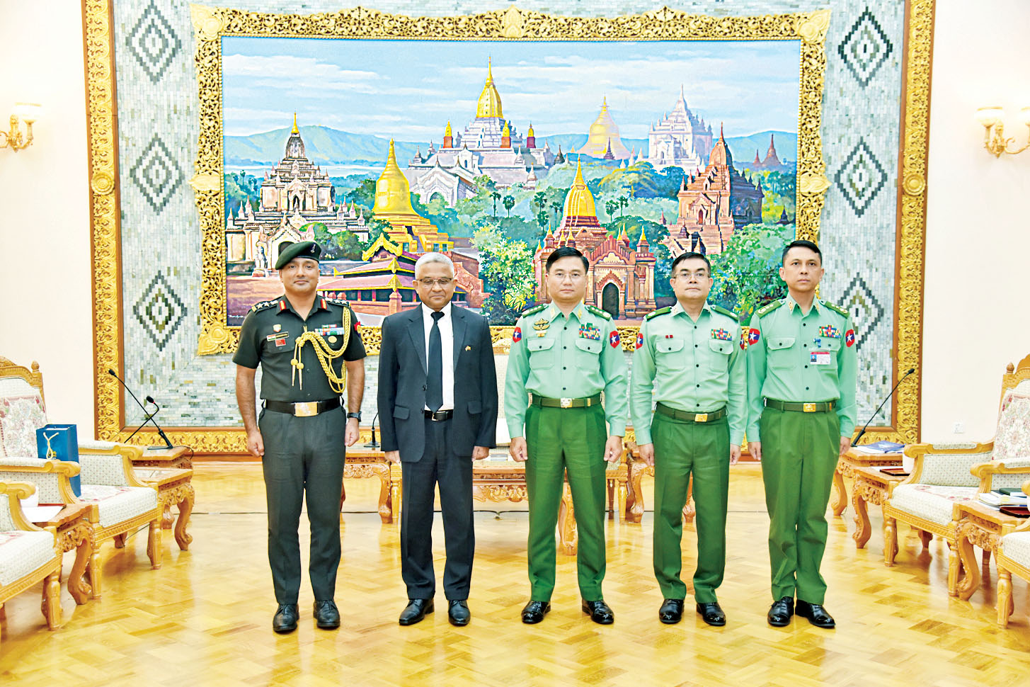 နိုင်ငံတော်လုံခြုံရေးနှင့် အေးချမ်းသာယာရေးကော်မရှင်အဖွဲ့ဝင် ညှိနှိုင်းကွပ်ကဲရေးမှူး (ကြည်း၊ ရေ၊ လေ) ဗိုလ်ချုပ်ကြီးကျော်စွာလင်းသည် မြန်မာနိုင်ငံဆိုင်ရာ အိန္ဒိယသံအမတ်ကြီး H.E. Mr. Abhay Thakur ဦးဆောင်သော ကိုယ်စားလှယ်အဖွဲ့အား ယနေ့မွန်းလွဲပိုင်းတွင် နေပြည်တော်ရှိ ဘုရင့်နောင်ရိပ်သာဧည့်ခန်းမဆောင်၌ လက်ခံတွေ့ဆုံသည်။