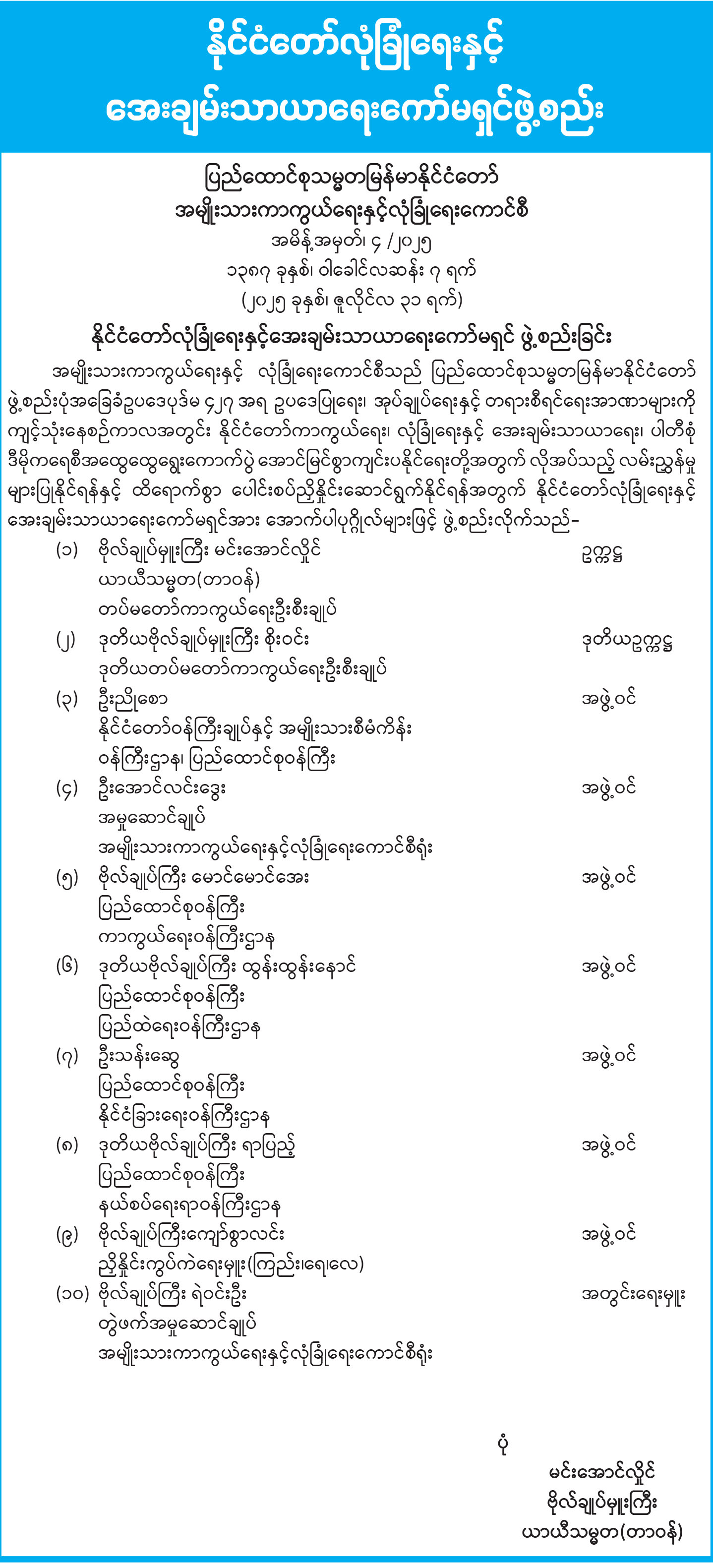 နိုင်ငံတော်လုံခြုံရေးနှင့် အေးချမ်းသာယာရေးကော်မရှင်ဖွဲ့စည်း
