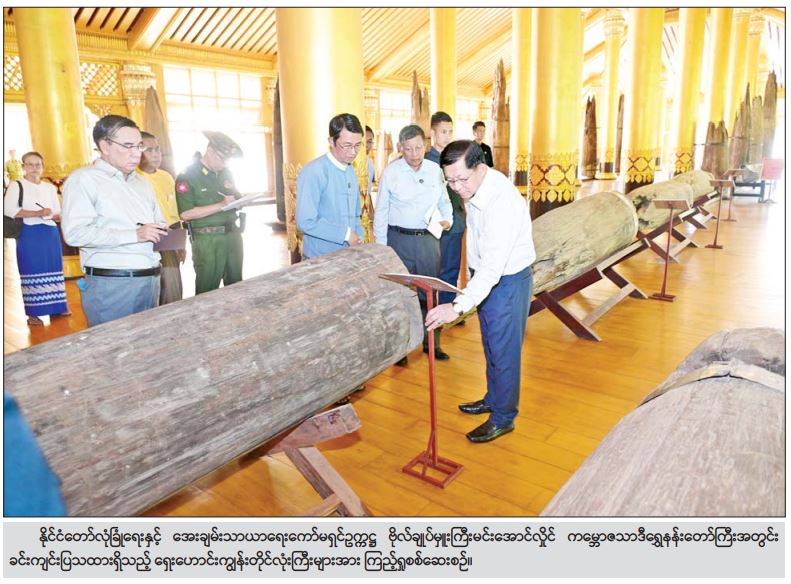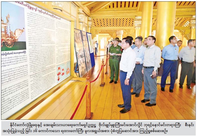 ထို့နောက် နိုင်ငံတော်လုံခြုံရေးနှင့်အေးချမ်းသာယာရေးကော်မရှင်ဥက္ကဋ္ဌနှင့် အဖွဲ့ဝင်များသည် ဘုရင့်နောင်မင်းတရားကြီး စီးနင်းအသုံးပြုခဲ့သည့် မြင်း ၁၆ ကောင်ကသော ရထားတော်ကြီး မူလအရွယ်အစားပုံစံတူပြဆောင်အား ရှေးမူမပျက်ပြန်လည်တည်ဆောက်ပြီးစီးမှုအခြေအနေများကို သွားရောက်ကြည့်ရှုစစ်ဆေးပြီး လိုအပ်သည်များ လမ်းညွှန်မှာကြားသည်။