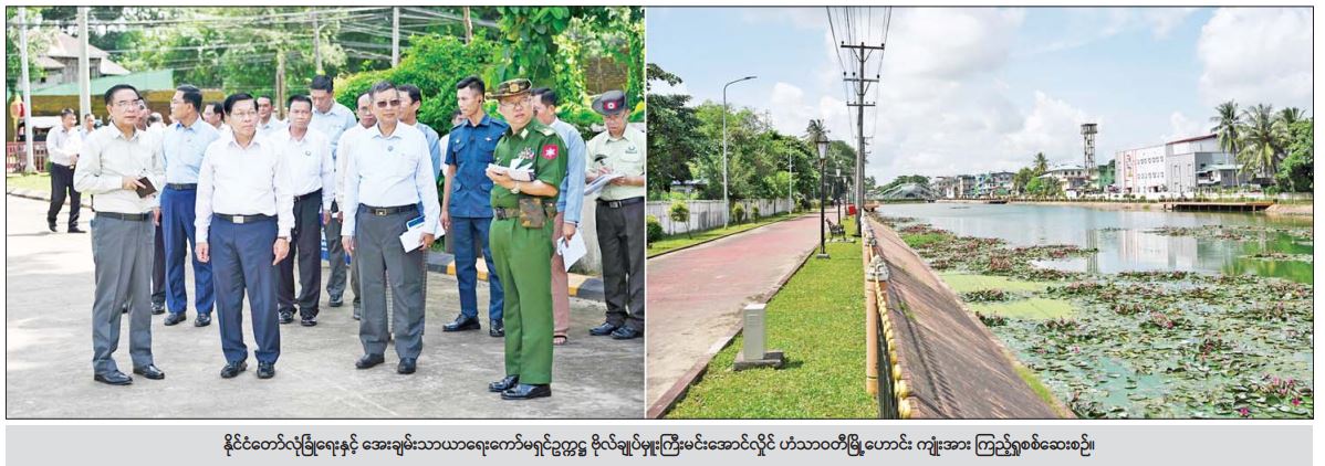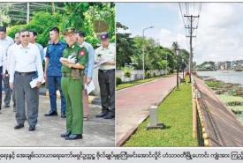 ဆက်လက်၍ ဟံသာဝတီမြို့ရိုး၊ ကျုံးဘေးတစ်လျှောက်နှင့် ပဲခူးမြို့အတွင်း မော်တော်ယာဉ်များဖြင့် လှည့်လည်ကြည့်ရှုစစ်ဆေးခဲ့ကြပြီး ပဲခူးမြို့အတွင်း ဖြတ်သန်းစီးဆင်းသွားသည့် ပဲခူးမြစ်အား ကျောက်စီနံရံများပြုလုပ်၍ ရေစီးဆင်းမှုများကောင်းမွန်စေရေး စနစ်တကျဖြင့် ထိန်းသိမ်း ဆောင်ရွက်ရန် တာဝန်ရှိသူများကို လမ်းညွှန်မှာကြားခဲ့သည်။