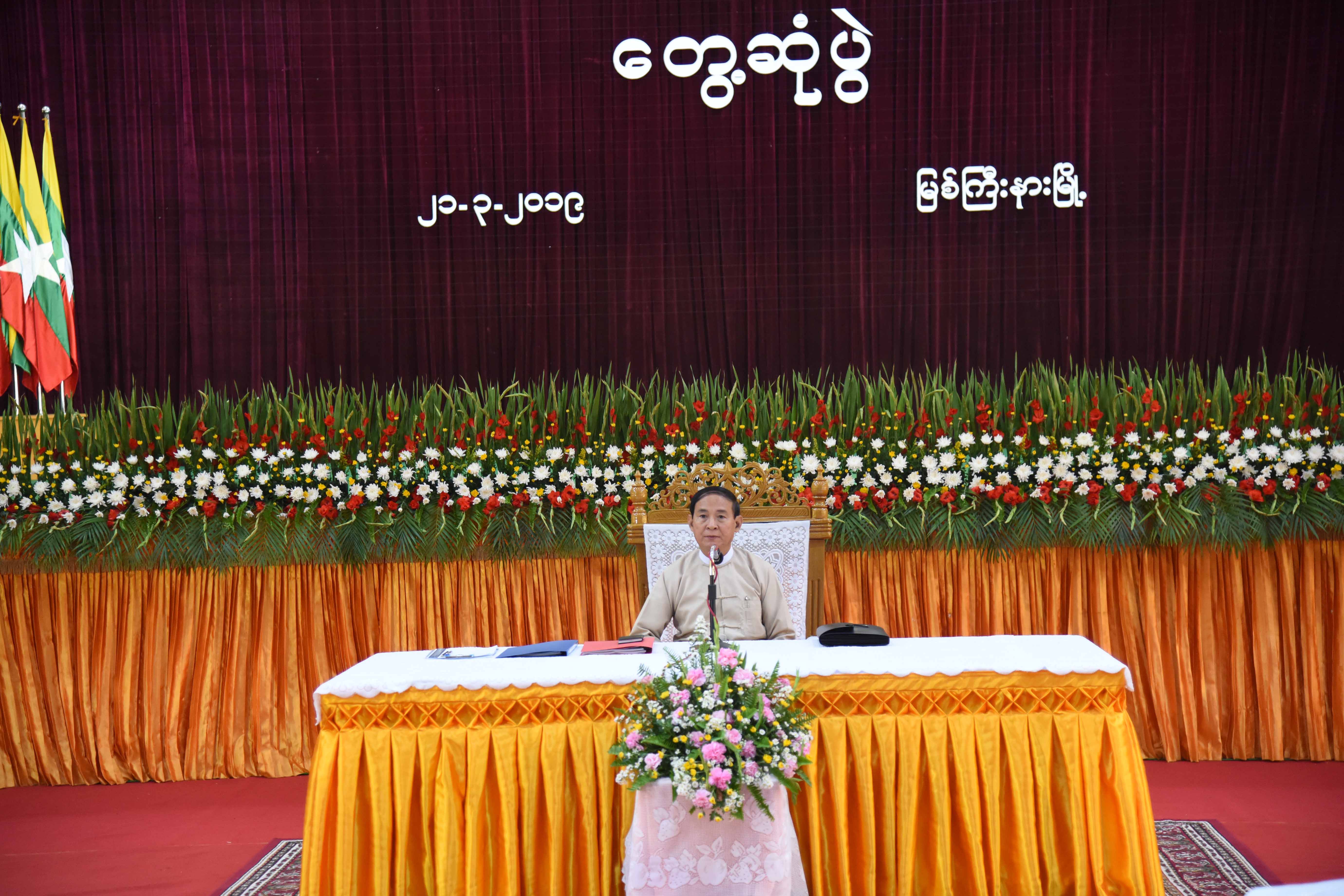 စစ်ဘေးရှောင် ပြည်သူများ၏ ကျန်းမာရေး၊ နေထိုင်ရေးနှင့် စာဝတ်နေရေး ကိစ္စရပ်များကို ဂရုစိုက်ပေးစေလိုကြောင်း၊ ပြန်လည်နေရာချထားရေးနှင့် လုံခြုံရေး ကိစ္စများကိုလည်း ဆောင်ရွက်ပေးရန်လိုကြောင်း၊ မဏ္ဍိုင်သုံးရပ်လုံးတွင် ကန့်သတ်ချက်များရှိသဖြင့်  လုပ်ပိုင်ခွင့်များကို ကျော်လွန်၍ မလုပ်ဆောင်ရန်လိုကြောင်း၊ ယခုလို အခွင့်အရေးရသည့် အချိန်ကာလတွင် မိမိဒေသ၊ မိမိပြည်နယ်၊ မိမိပြည်ထောင်စု အကျိုးကို ရှေးရှုပြီး နိုင်ငံသူ နိုင်ငံသားများအတွက် မိမိမည်မျှတာဝန်ကျေခဲ့သလဲ ဆိုသည်ကို စဉ်းစားကြစေလိုကြောင်း၊ မိမိပခုံးပေါ်သို့ ကျရောက်လာသည့် သမိုင်းပေးတာဝန်များကို မိမိဖြတ်သန်းသည့် ကာလတစ်ခုတွင် မည်မျှကျေပွန်စွာ လုပ်ဆောင်ခဲ့သည်ကို နောင်မျိုးဆက်သစ်များက တန်ဖိုးဖြတ်မည်ဖြစ်သည့်အတွက် အကောင်းဆုံးဖြစ်အောင် ဆောင်ရွက်သွားကြရန် လိုအပ်ကြောင်း ပြောကြားပြီး နိုင်ငံတော်သမ္မတက တွေ့ဆုံပွဲသို့ တက်ရောက်လာကြသူများအား ရင်းရင်းနှီးနှီး လိုက်လံနှုတ်ဆက်သည်။