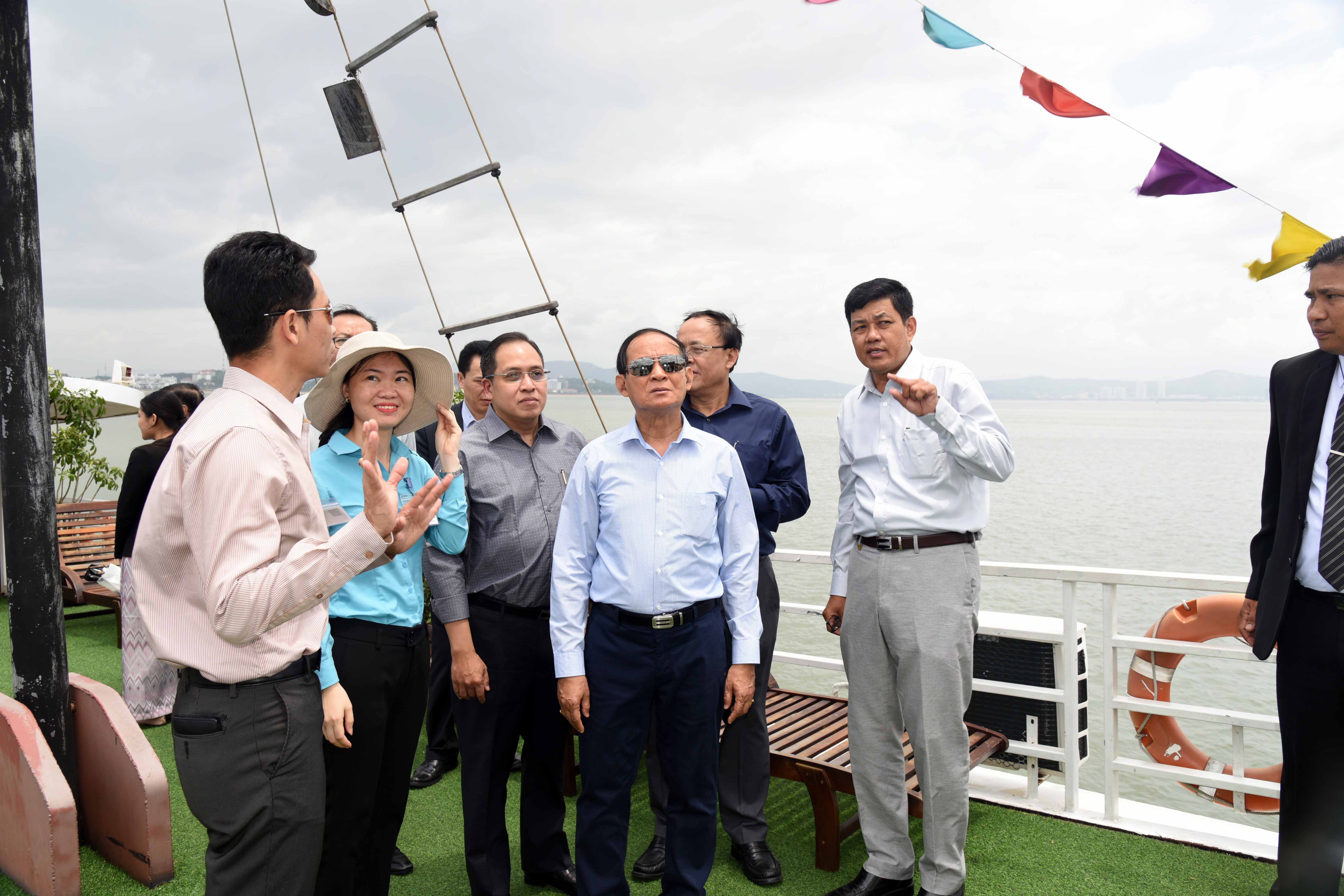 ထို့နောက် နိုင်ငံတော်သမ္မတနှင့်ဇနီး ဦးဆောင်သော ကိုယ်စားလှယ်အဖွဲ့သည် Cruise သင်္ဘောဖြင့် Ha Long Bay အတွင်း ကမ္ဘာလှည့်ခရီးသွားများ လာရောက် လည်ပတ်နေမှုနှင့် သဘာဝကျွန်းများ ဖြစ်တည်နေမှုကို ကြည့်ရှုလေ့လာကြသည်။