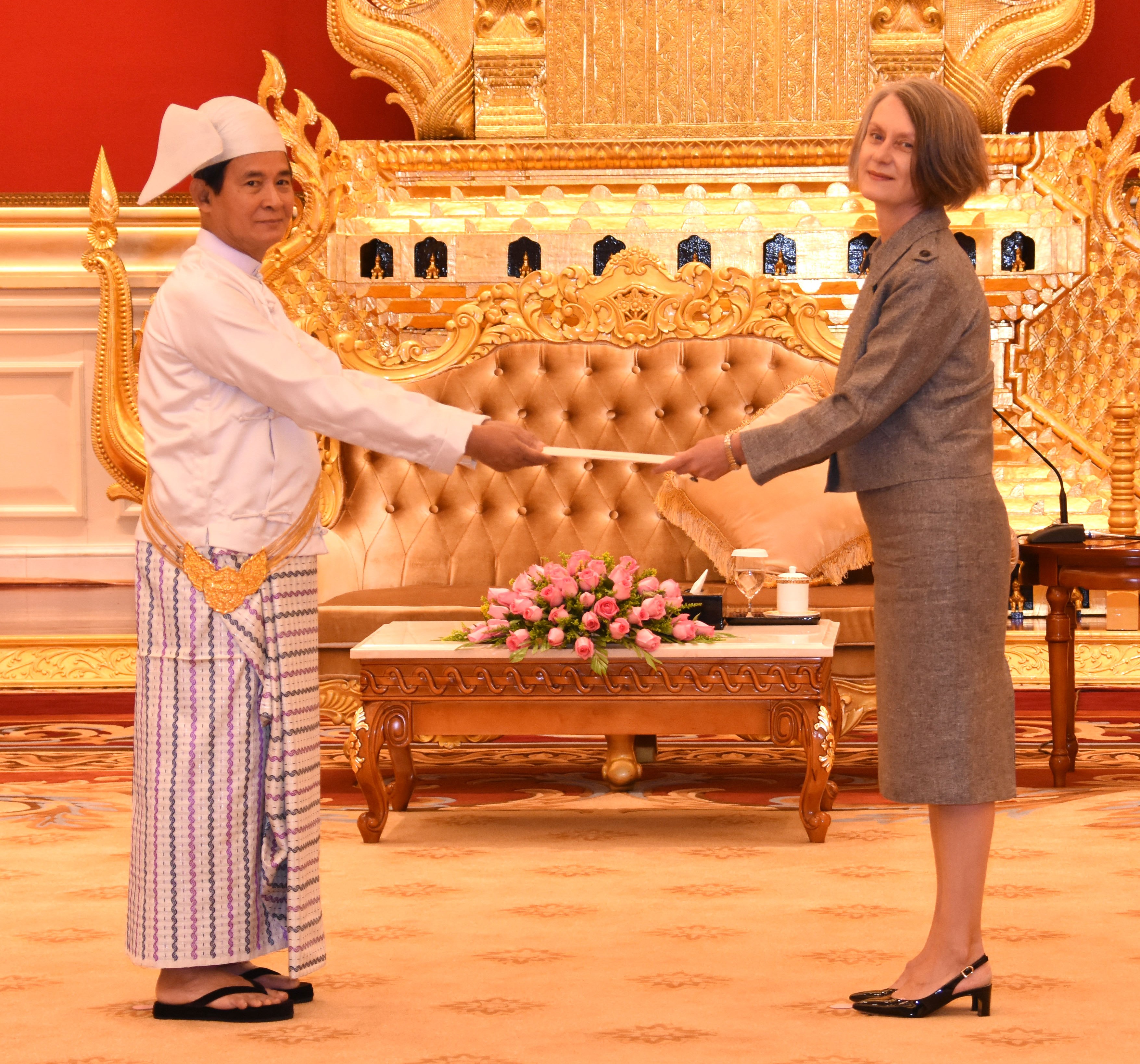 ပြည်ထောင်စုသမ္မတ မြန်မာနိုင်ငံတော် နိုင်ငံတော်သမ္မတ ဦးဝင်းမြင့်ထံ မြန်မာနိုင်ငံဆိုင်ရာ သြစတြေးလျဓနသဟာယနိုင်ငံ သံအမတ်ကြီးအဖြစ် ခန့်အပ်ရန် သဘောတူညီပြီးဖြစ်သော သံအမတ်ကြီး မစ္စ အင်ဒရီရာ ဖော့ခ်နာသည် ယနေ့နံနက် ၁၀ နာရီတွင် နေပြည်တော်ရှိ နိုင်ငံတော်သမ္မတအိမ်တော် သံတမန်ဆောင်ဧည့်ခန်းမ၌ ၎င်း၏ သံအမတ်ခန့်အပ်လွှာကို ပေးအပ်သည်။