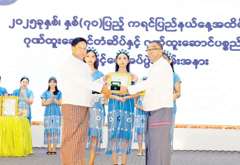 ယမန်နေ့ မွန်းလွဲပိုင်းကလည်း ပြည်ထောင်စုဝန်ကြီးနှင့် အဖွဲ့ဝင်များသည် ဘားအံမြို့ရှိ ဇွဲကပင်ခန်းမ၌ ကျင်းပသည့် နှစ် (၇၀) ပြည့် ကရင်ပြည်နယ်နေ့အထိမ်းအမှတ် ကရင်ပြည်နယ် ဂုဏ်ထူးဆောင်လက်မှတ်နှင့် ဂုဏ်ထူးဆောင်ဆုများ ချီးမြှင့်ပေးအပ်ပွဲအခမ်းအနားသို့ တက်ရောက်ကြပြီး စီမံခန့်ခွဲရေး၊ စိုက်ပျိုးရေး၊ မွေးမြူရေး၊ ပညာရေး၊ သုတေသန၊ လူမှုရေးနှင့် အမျိုးဘာသာ၊ သာသနာဆိုင်ရာ ထူးချွန်ဆုစသည့် စုစုပေါင်းဂုဏ်ထူးဆောင်ဆု ၈၆ ဆုကို ပေးအပ် ချီးမြှင့်ကြသည်။