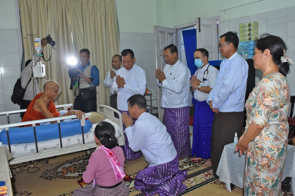 ဦးစွာ ဆရာတော်ကြီးအား ဖူးမြော်ပြီးနောက် နိုင်ငံတော်စီမံအုပ်ချုပ်ရေး ကောင်စီ အဖွဲ့ဝင် ဦးမောင်ကိုနှင့်အဖွဲ့ကို မန္တလေးတိုင်းဒေသကြီး ပြည်သူ့ကျန်းမာရေးနှင့် ကုသရေးဦးစီးဌာနမှ ဒုတိယညွှန်ကြားရေးမှူးချုပ် ဒေါက်တာဝင်းနိုင်နှင့် အထူးကုဆရာဝန်ကြီးများက ဆရာတော်ကြီး၏ ကျန်းမာရေး တိုးတက်ကောင်းမွန်နေသည့် အခြေအနေများ၊ အနီးကပ် ကြီးကြပ်ကာ စနစ်တကျဆောင်ရွက် ကုသပေးနေမှုနှင့် ဆက်လက်ဆောင်ရွက်သွားမည့် အစီအစဉ်များကို ရှင်းလင်းတင်ပြရာ နိုင်ငံတော်စီမံအုပ်ချုပ်ရေးကောင်စီအဖွဲ့ဝင်နှင့် တိုင်းဒေသကြီးဝန်ကြီးချုပ်တို့က ဆရာတော်ကြီး၏ ကျန်းမာရေးစောင့်ရှောက်မှုများနှင့်ပတ်သက်၍ အထူးဂရုစိုက် ဆောင်ရွက်သွားကြရန်တို့ကို အလေးအနက်ထားမှာကြားပြီး လိုအပ်သည်များကို ဖြည့်ဆည်း ဆောင်ရွက်ပေးသည်။