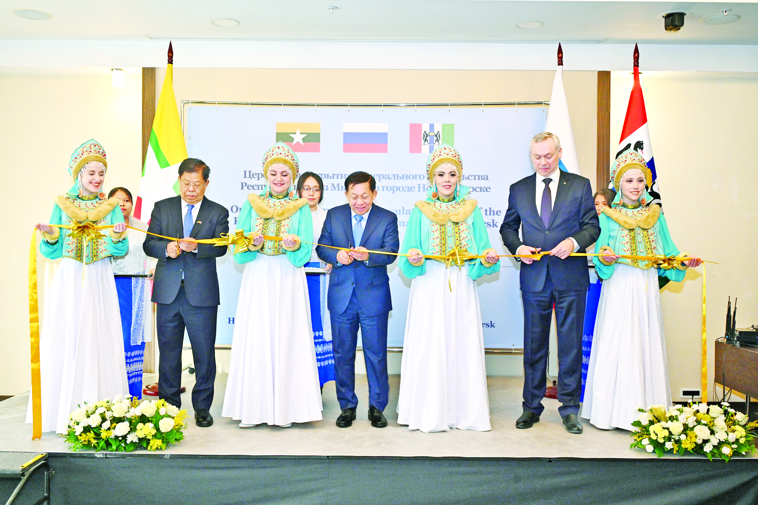 ရုရှားဖက်ဒရေးရှင်းနိုင်ငံ နိုဗိုစီဗစ်မြို့၊ ကောင်စစ်ဝန်ချုပ်ရုံးဖွင့်ပွဲ အခမ်းအနားကို ယနေ့ဒေသစံတော်ချိန် နံနက်ပိုင်းတွင် Grand Autograph ဟိုတယ်၌ ကျင်းပပြုလုပ်ရာ ရုရှားနိုင်ငံ၌ တရားဝင်ချစ်ကြည်ရေးခရီး ရောက်ရှိနေသည့် နိုင်ငံတော်စီမံ အုပ်ချုပ်ရေးကောင်စီဥက္ကဋ္ဌ နိုင်ငံတော် ဝန်ကြီးချုပ် ဗိုလ်ချုပ်မှူးကြီး မင်းအောင်လှိုင် တက်ရောက်ဖွင့်လှစ်ပေးသည်။