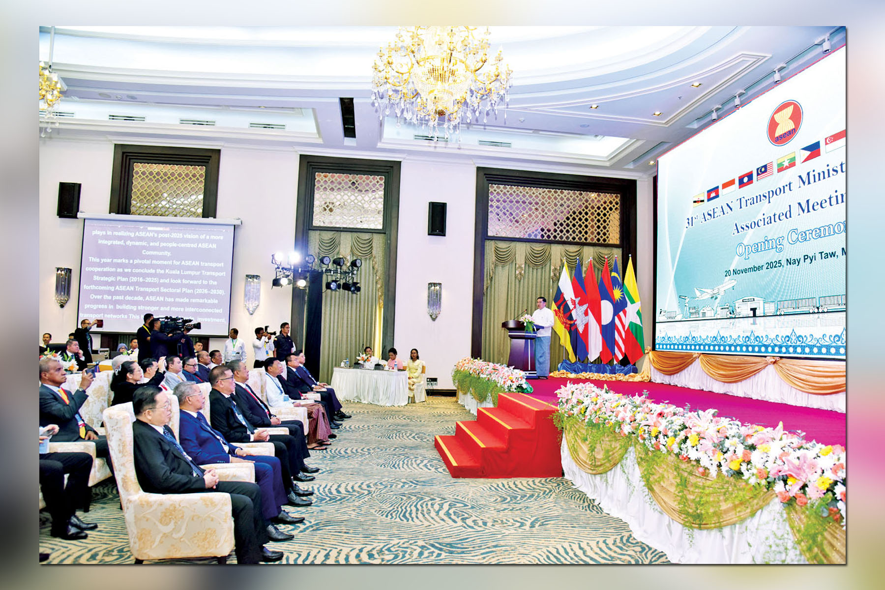 ယခုနှစ်သည် ကွာလာလမ်ပူပို့ဆောင်ရေးမဟာဗျူဟာစီမံကိန်း (၂၀၁၆-၂၀၂၅) ၏ အပြီးသတ်နှစ်ဖြစ်ပြီး အာဆီယံပို့ဆောင်ရေးစီမံကိန်း (၂၀၂၆-၂၀၃၀)ကို ကြိုဆိုမည့်နှစ်ဖြစ်သည်နှင့်အညီ အာဆီယံပို့ဆောင်ရေး ပူးပေါင်းဆောင်ရွက်မှုအတွက် အရေးပါသော အချိန်အခါလည်းဖြစ်ကြောင်း၊ (၄၇)ကြိမ်မြောက် အာဆီယံထိပ်သီးအစည်းအဝေး၏ ကြေညာစာတမ်းအရ အာဆီယံ-နယူးဇီလန် လေကြောင်း ဝန်ဆောင်မှုဆိုင်ရာ သဘောတူစာချုပ် လက်မှတ်ရေးထိုးခဲ့ခြင်းအပေါ်လည်း ဂုဏ်ပြုပါကြောင်း၊ ထိုသို့ ဆောင်ရွက်နိုင်ခြင်းသည် လေကြောင်းဆက်သွယ်မှုအားကောင်းလာစေရန်၊ ကုန်စည်နှင့်ခရီးသွားလုပ်ငန်း လွယ်ကူချောမွေ့စေရန်နှင့် ပြည်သူအချင်းချင်းဆက်ဆံရေးနက်ရှိုင်းလာစေရန် အရေးပါသည့် မှတ်တိုင်တစ်ခုပင်ဖြစ်ကြောင်း။