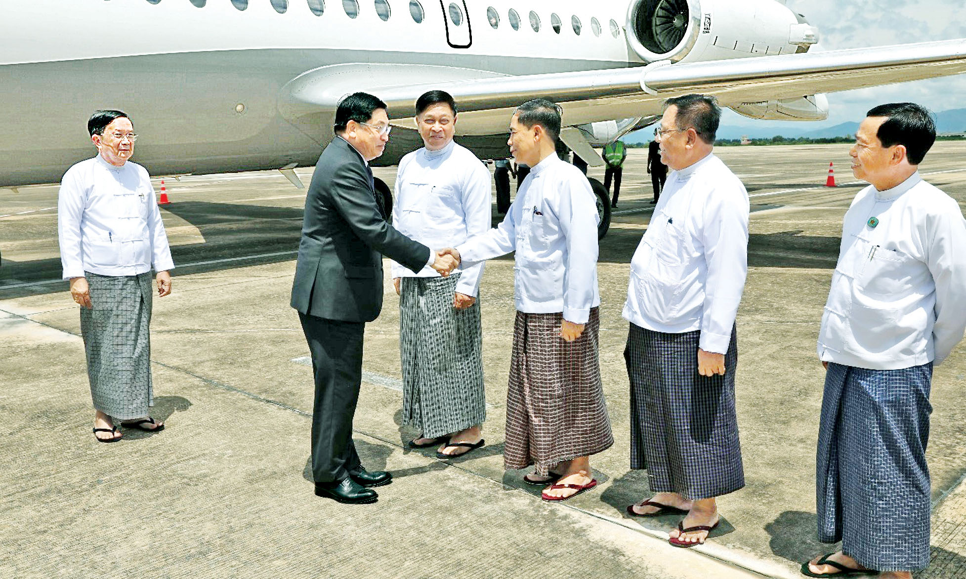 နိုင်ငံတော်ဝန်ကြီးချုပ် ဦးဆောင်သော မြန်မာကိုယ်စားလှယ်အဖွဲ့အား ကွမ်ရှီးဒေသ CPC ပါတီ ဒုတိယအတွင်းရေးမှူး Mr.Wang Weiping၊ တရုတ် ပြည်သူ့သမ္မတနိုင်ငံဆိုင်ရာ မြန်မာနိုင်ငံသံအမတ်ကြီး ဦးတင်မောင်ဆွေ၊ နန်နင်းမြို့ မြန်မာကောင်စစ်ဝန်ချုပ်၊ တာဝန်ရှိသူများနှင့် ယဉ်ကျေးမှုအဖွဲ့များက ရိုးရာအကအလှများဖြင့် နန်နင်းအပြည်ပြည်ဆိုင်ရာ လေဆိပ်၌ ပို့ဆောင်နှုတ်ဆက်ကြသည်။