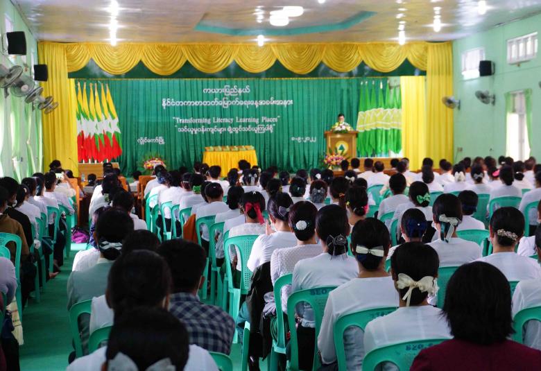 ယင်းနောက် ပြည်နယ်ပညာရေးမှူး ဒေါက်တာကျော်လွင်က ၂၀၂၂ ခုနှစ် နိုင်ငံတကာ စာတတ်မြောက်ရေးနေ့ ယူနက်စကို ညွှန်ကြားရေးမှူးချုပ်မှ ပေးပို့လာသော သဝဏ်လွှာကို ဖတ်ကြားပြီး တေးသီချင်းဖြင့် သီဆိုဂုဏ်ပြုပေးသည့် ကျောင်းသား၊ ကျောင်းသူများအား ဂုဏ်ပြုမှတ်တမ်းလွှာများ ပေးအပ်သည်။ ဆက်လက်၍ ၂၀၂၂ ခုနှစ် နိုင်ငံတကာ စာတတ်မြောက်ရေးနေ့ အခမ်းအနား စာတတ်မြောက်ရေးနေ့ လုပ်ငန်းများ ဆောက်ရွက်မှု Video Clip ကိုပြသရာ ပြည်နယ်ဝန်ကြီးချုပ်နှင့် အခမ်းအနားသို့ တက်ရောက်လာကြသူများက ကြည့်ရှုကြသည်။ ထို့နောက် နိုင်ငံတကာ စာတတ်မြောက်ရေးနေ့ အခမ်းအနားကို အထက (၇) မှ ကျောင်းသား၊ ကျောင်းသူများက “စာတတ်မြောက်ရေး ဝိုင်းကူပေး” သီချင်းဖြင့် သီဆိုပိတ်သိမ်းခဲ့ကြောင်း သိရသည်။
