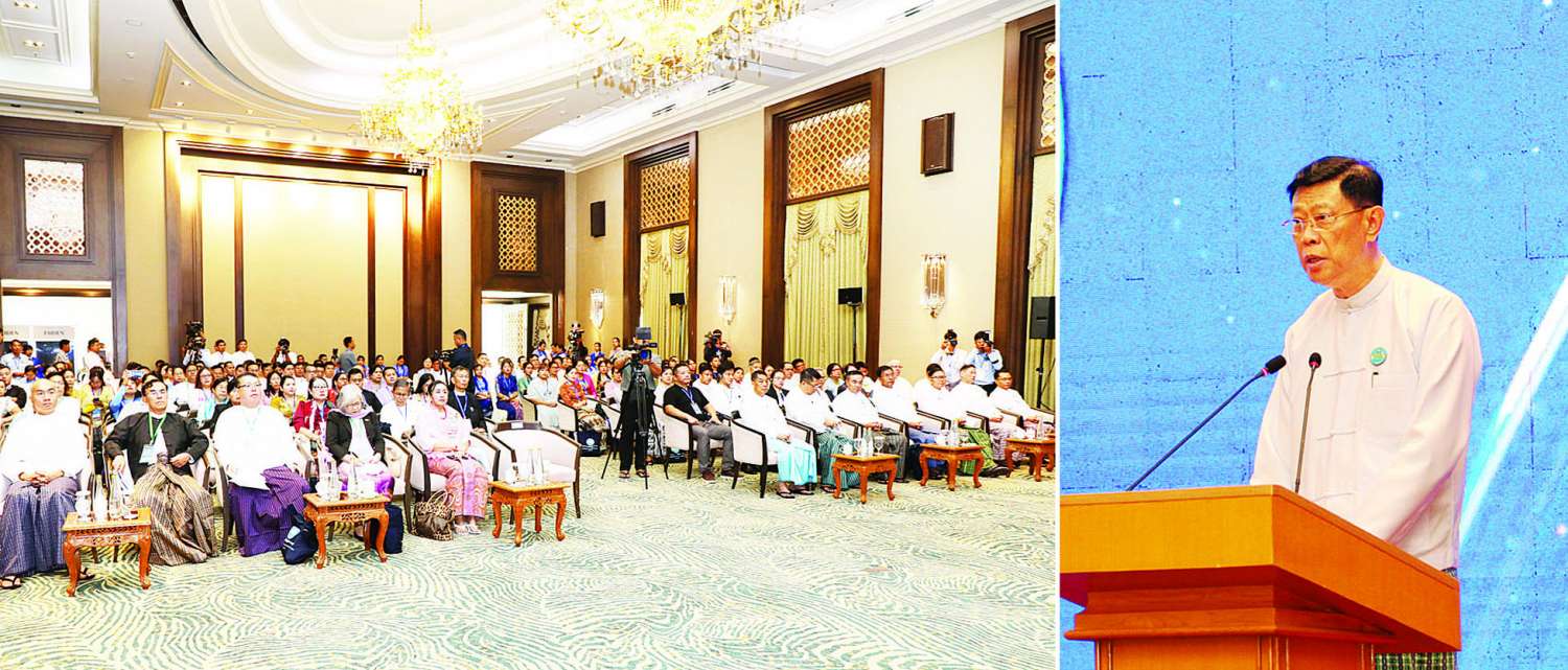 မူပိုင်ခွင့်ဆိုင်ရာ ဗဟိုကော်မတီဥက္ကဋ္ဌက နိုင်ငံတကာမူပိုင်ခွင့်ညီလာခံကို မြန်မာနိုင်ငံတွင် ဆန်းသစ်တီထွင်မှု၊ စီးပွားရေးဖွံ့ဖြိုးတိုးတက်မှုနှင့် ယဉ်ကျေးမှုထိန်းသိမ်းရေးတို့ကို အားပေးလှုံ့ဆော် သည့် မူပိုင်ခွင့်ဂေဟစနစ် အားကောင်းစေရန် ဦးတည်ချက်ဖြင့် စီးပွားရေးကဏ္ဍ၊ လူမှုရေးကဏ္ဍ၊ သိပ္ပံနှင့်ယဉ်ကျေးမှုကဏ္ဍများတွင် မူပိုင်ခွင့်၏အရေးပါပုံကို သိရှိစေရန်ရည်ရွယ်၍ ကျင်းပခြင်းဖြစ်ပါ ကြောင်း၊ နိုင်ငံတကာအဆင့် မူပိုင်ခွင့်ညီလာခံသည် နိုင်ငံတော်တွင် လက်ရှိကျင့်သုံးဆောင်ရွက် နေသည့် မူပိုင်ခွင့်စနစ်၏ အားသာချက်၊ အားနည်းချက်များကို အခြားမူပိုင် ခွင့်စနစ်ဖွံ့ဖြိုးသော နိုင်ငံများနှင့် နှိုင်းယှဉ်လေ့လာနိုင်စေရန်၊ ပိုမိုကောင်းမွန်သည့် စနစ်တစ်ရပ်ကျင့်သုံး ဆောင်ရွက်နိုင်ရန် နှင့် ညီလာခံ၏ ပြည်တွင်း၊ ပြည်ပစာတမ်းများမှတစ်ဆင့် ရှေ့ဆက်လက်ဆောင်ရွက်မည့် လုပ်ငန်းစဉ်များကို ဖော်ထုတ်နိုင်မည်ဖြစ်၍ မူပိုင်ခွင့်စနစ်တစ်ရပ် တည်ထောင် နိုင်ရန် အထောက်အကူဖြစ်စေမည်ဖြစ်ပါကြောင်း။