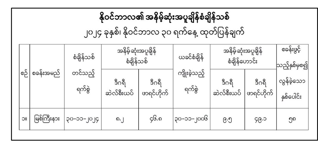 ထုတ်ပြန်သည့် နိုဝင်ဘာလ၏ အနိမ့်ဆုံးအပူချိန်စံချိန်သစ်