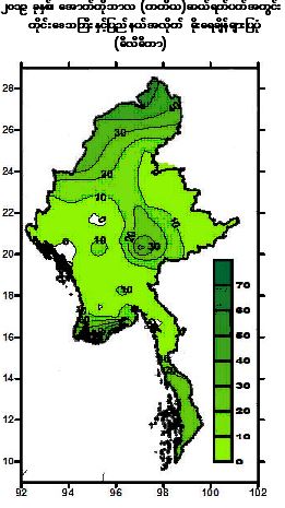 မိုးရွာရက်အနေဖြင့်- ရန်ကုန်တိုင်းဒေသကြီး၊ ဧရာဝတီတိုင်းဒေသကြီး၊ တနင်္သာရီတိုင်းဒေသကြီး၊ ရှမ်းပြည်နယ် (တောင်ပိုင်း)၊ ကရင်ပြည်နယ်နှင့် မွန်ပြည်နယ်တို့တွင် (၈)ရက်မှ (၁၂)ရက်ခန့်နှင့် နေပြည်တော်၊ စစ်ကိုင်းတိုင်း ဒေသကြီး၊ မန္တလေးတိုင်းဒေသကြီး၊ မကွေးတိုင်းဒေသကြီး၊ ပဲခူးတိုင်းဒေသကြီး၊ ကချင်ပြည်နယ်၊ ချင်းပြည်နယ်၊ ရှမ်းပြည်နယ်(မြောက်ပိုင်းနှင့်အရှေ့ပိုင်း)၊ ရခိုင်ပြည်နယ်နှင့် ကယားပြည်နယ်တို့တွင် (၃)ရက်မှ (၇)ရက်ခန့်အထိ မိုးထစ်ချူန်း ရွာနိုင်သည်။