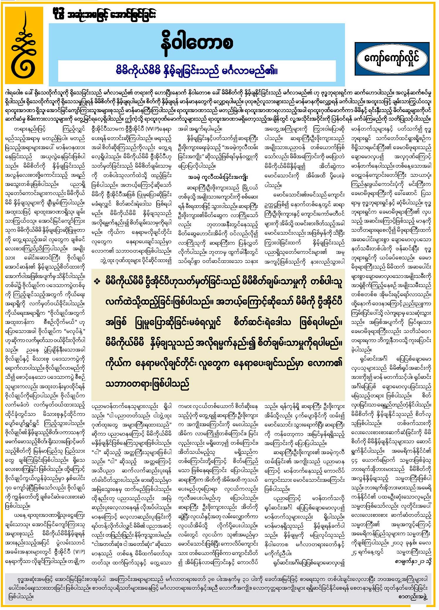 နိဝါတောစ ( မိမိကိုယ်မိမိ နှိမ့်ချခြင်းသည် မင်္ဂလာမည်၏။)