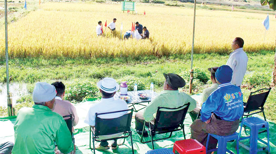 ရှမ်းပြည်နယ် (တောင်ပိုင်း) နမ့်စန်မြို့နယ်တွင် မိုးစပါး စံကွက်ရိတ်သိမ်းပွဲကို ယနေ့နံနက်ပိုင်းက မက်မွန်မုန်းကျေးရွာအုပ်စု နမ့်မော်ခေါက်ဆင့်ကျေးရွာ ကွင်းအမှတ် (၂၇၁)၊ ဦးပိုင်အမှတ် (၂)ရှိ တောင်သူ ဦးကျော်ကျော်၏ လယ်မြေ ၃ ဒသမ ၃၅ ဧကတွင် ဆောင်ရွက်သည်။