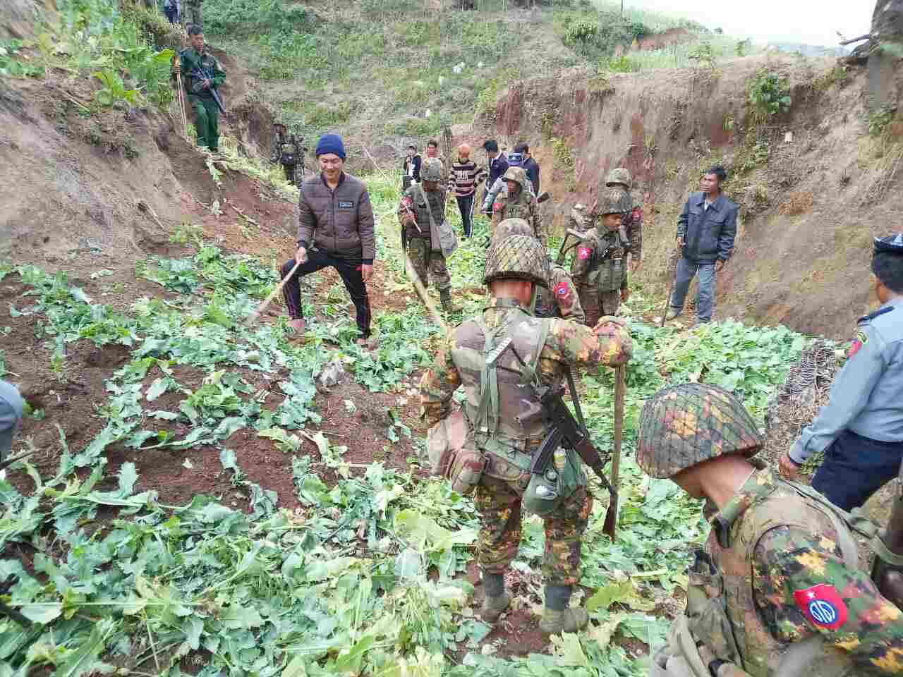 နမ့်ခမ်းမြို့နယ်၊ ပန်းဆေးကျေးရွာ အနောက်မြောက်ဘက် ၁ မိုင် ၆ ဖာလုံခန့်အကွာ၌ အမြင့် ၂ ပေခန့်ရှိ ဘိန်းစိုက်ခင်း (၂)ဧကခန့်အား ပန်ဆေးနယ်မြေရဲစခန်းမှူး ရဲအုပ်မြင့်ဝင်း ဦးစီးပူးပေါင်းအဖွဲ့မှ ဖေဖော်ဝါရီ ၂၈ ရက်တွင် ဖျက်ဆီးရှင်းလင်းခဲ့ကြောင်း ရဲတပ်ဖွဲ့ သတင်းထုတ်ပြန်ချက်အရ သိရှိရသည်။