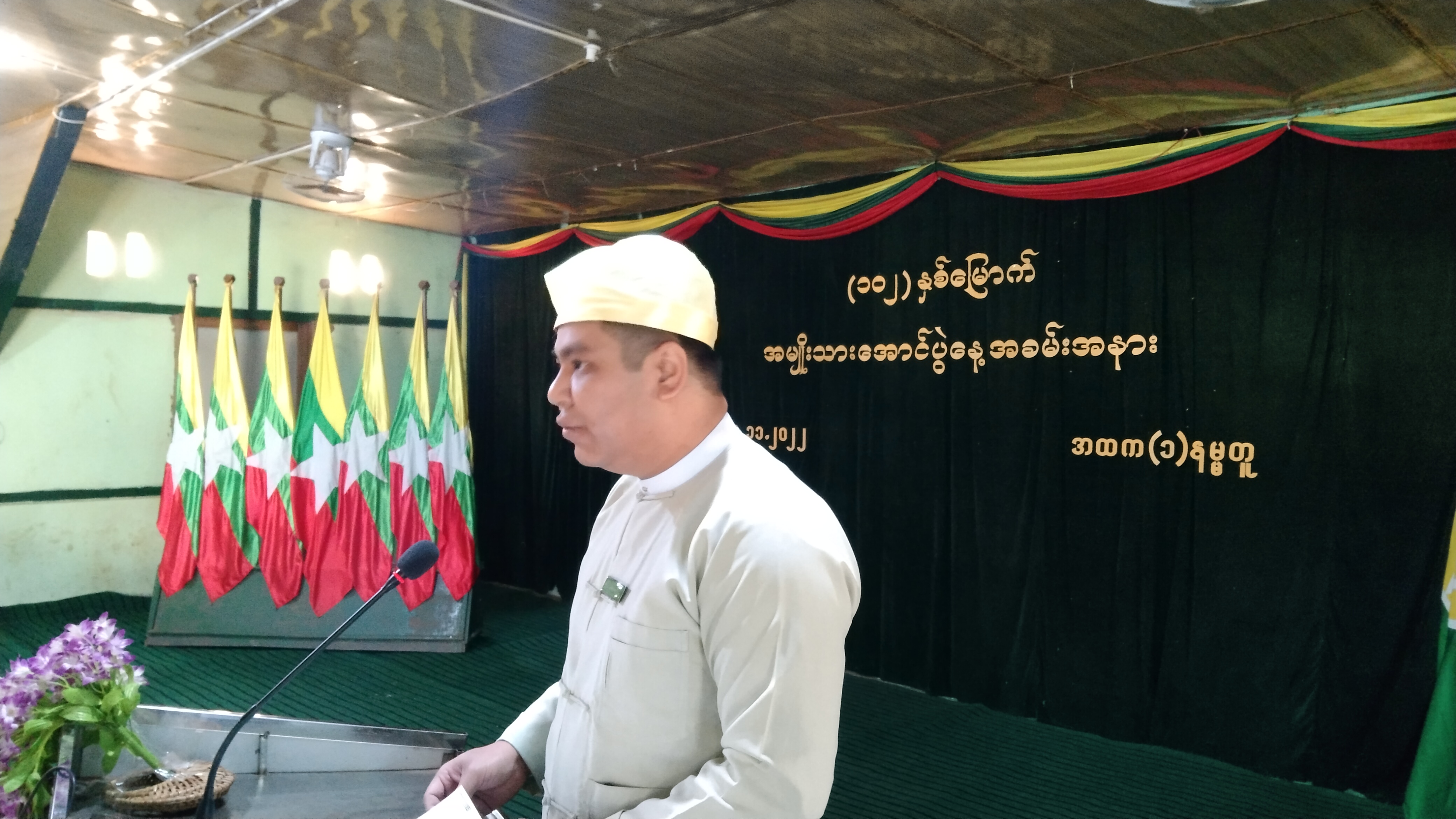 အခမ်းအနားတွင် နိုင်ငံတော်စီမံအုပ်ချုပ်ရေးကောင်စီဥက္ကဋ္ဌ၊ နိုင်ငံတော်ဝန်ကြီးချုပ် ဗိုလ်ချုပ်မှူးကြီး မင်းအောင်လှိုင်ထံမှ (၁၀၂)နှစ်မြောက် အမျိုးသားအောင်ပွဲနေ့ အခမ်းအနားသို့ ပေးပို့သည့် သဝဏ်လွှာအား မြို့နယ်စီမံအုပ်ချုပ်ရေးအဖွဲ့ဥက္ကဋ္ဌ မြို့နယ်အုပ်ချုပ်ရေးမှူး ဦးဝင်းမင်းထွန်းက ဖတ်ကြားပေးခဲ့သည်။