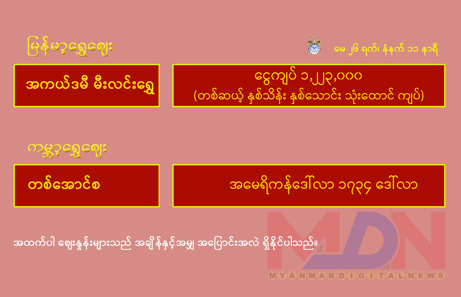 နံနက်ပိုင်းရွှေဈေး(26-5-2020)
