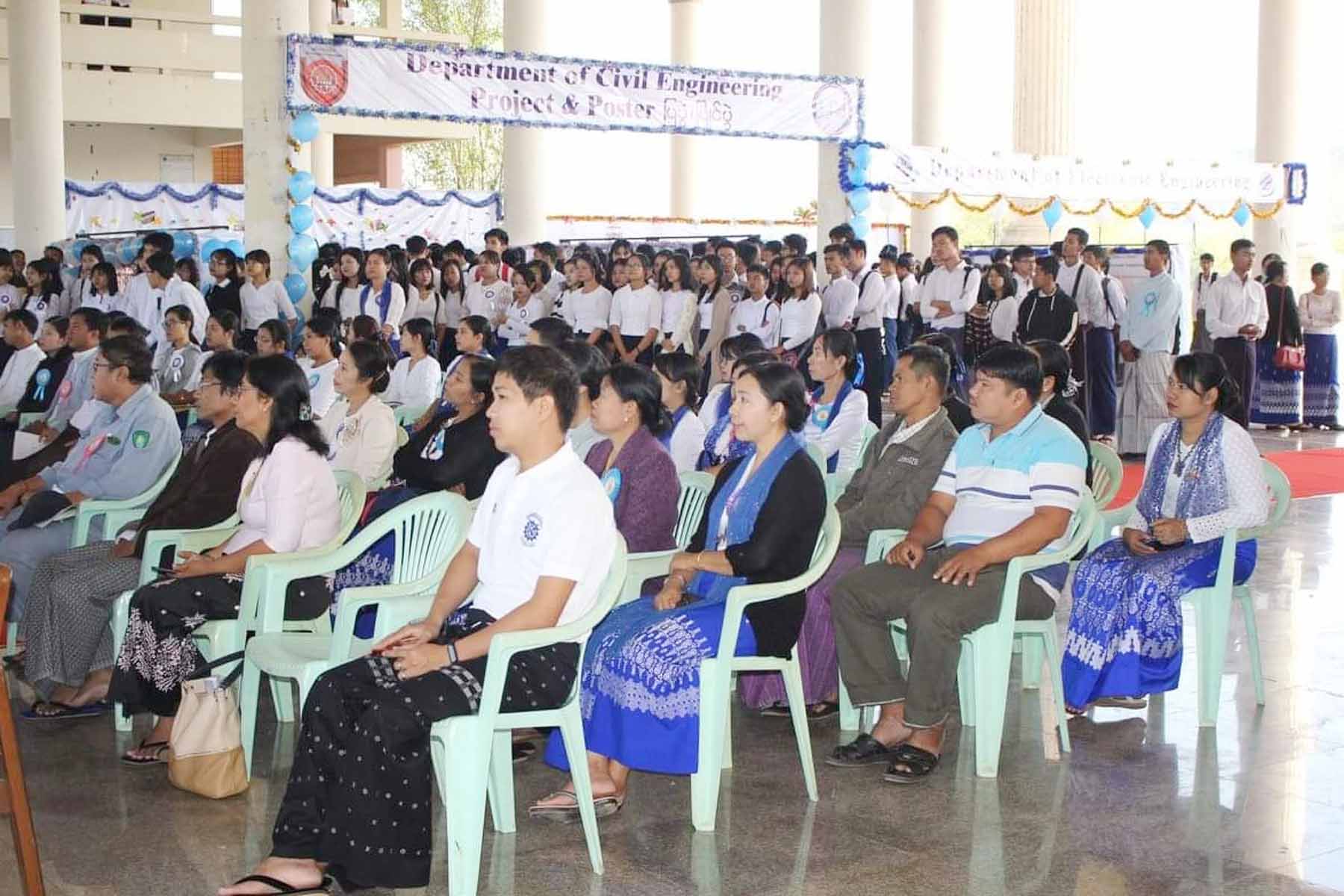 အခမ်းအနားတွင် တိုင်းဒေသကြီးလွှတ်တော်ဥက္ကဋ္ဌ ဦးခင်မောင်အေး၊ တိုင်းဒေသကြီးအစိုးရအဖွဲ့ဝင် လူဝင်မှုကြီးကြပ်ရေးနှင့် လူ့စွမ်းအားအရင်းအမြစ်ဝန်ကြီး ဦးကျော်မင်းနှင့် တာဝန်ရှိသူများက Project & Poster ပြပွဲပြိုင်ပွဲအား ဖဲကြိုးဖြတ်ဖွင့်လှစ်ပေးသည်။