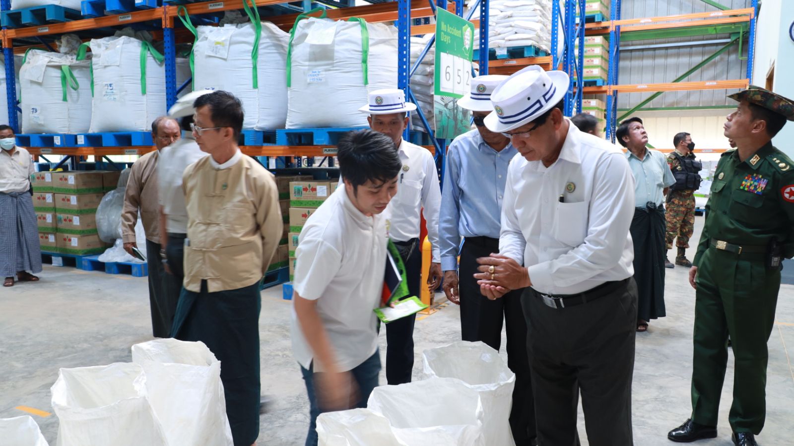 ဆက်လက်၍ ဝန်ကြီးချုပ်နှင့်အဖွဲ့သည် ဇုန်(၂)ရှိ EAST WEST SEED MYANMAR Co. Ltd. ၏ မျိုးစေ့ထုတ် လုပ်ငန်းခွင်ကို ကြည့်ရှုလေ့လာရာ တာဝန်ရှိသူများက လုပ်ငန်းဆောင်ရွက်နေမှုများကို လည်းကောင်း၊ C 12 လမ်း ကွန်ကရစ်ခင်းပြီးစီးမှုလုပ်ငန်းခွင်ကို လည်းကောင်း၊ လမ်းအထူးအဖွဲ့(၁၄)၏ ခရိုင်ချင်းဆက် အမှတ်(၁)လမ်းမှ ညောင်နှစ်ပင်ညီလာခံ ခန်းမဆောင်သို့ အရှည်ပေ ၁၃၀၀၊ အကျယ် ၄၈ ပေ ကွန်ကရစ်ခင်းခြင်း၊ အဝင်မုခ်ဦး ဆောင်ရွက်နေမှုများကိုလည်းကောင်း ကြည့်ရှုစစ်ဆေးပြီး လိုအပ်သည်များ မှာကြားသည်။