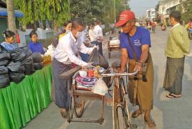 "ကိုဗစ်-၁၉ ရောဂါ ကာကွယ်၊ ထိန်းချုပ်ရေးကာလတွင် မြို့နယ်အတွင်း ခရီးသည်ပြည်သူများ နည်းပါးနေသဖြင့် ကျွန်တော်တို့ဝင်ငွေရရှိမှုမှာလည်း အရင်ထက်စာရင် ဝင်ငွေနည်းပါးနေပါတယ်၊ ခုလို အလှူရှင်များမှ စေတနာထက်သန်စွာ လှူဒါန်းပေးသောကြောင့် ကျေးဇူးတင်ပါသည်ဟု" အနှေးယာဉ် လုပ်သားတစ်ဦး က ပြောကြားသည်။