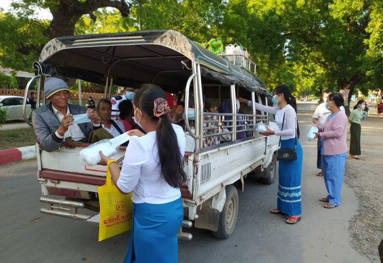 မန္တလေးတိုင်းဒေသကြီး၊ ညောင်ဦးခရိုင်၊ ညောင်ဦးမြို့နယ်၊ ညောင်ဦး-ချောက် ကားလမ်းမကြီး ရွှေစည်ခုံဘုရားကြီးတောင်ဘက် နှစ်လမ်းသွားလမ်းမကြီးပေါ်တွင် အောက်တိုဘာ ၂၁ ရက် နံနက်ပိုင်းက ကိုဗစ်-၁၉ ရောဂါ ကာကွယ်နိုင်ရေးအတွက် နှာခေါင်းစီးခုရေ ၃၀၀၀ ဖြန့်ဝေ၍ Mask Campaign ပြုလုပ်ခဲ့သည်။