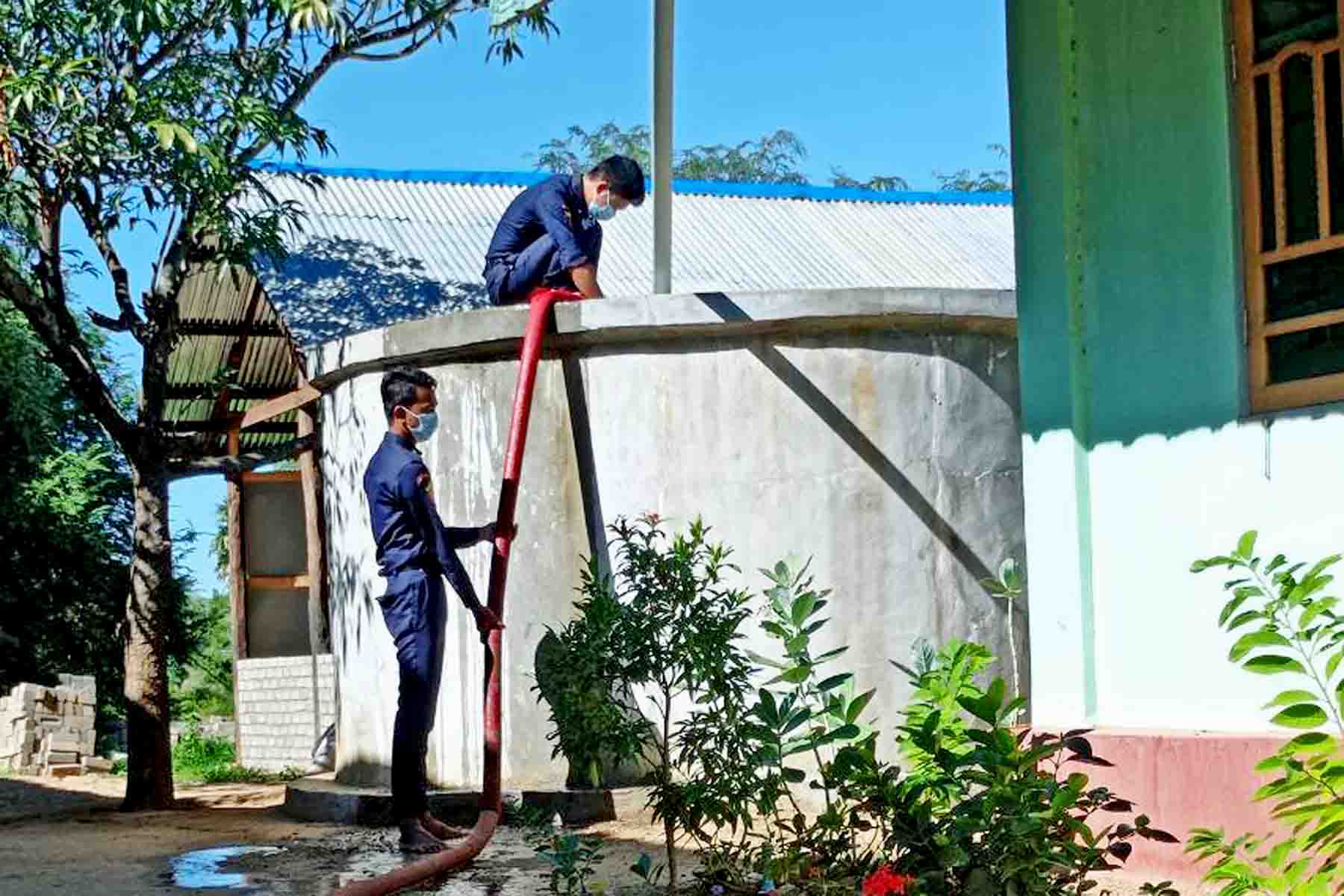 အဆိုပါ သောက်သုံးရေများ ဖြန့်ဝေလှူဒါန်းပေးရာတွင် ညောင်ဦးမြို့နယ်မီးသတ်ဦးစီးဌာန မြို့နယ်ဦးစီးမှူး ဦးကျော်မင်းသူ၏ ဦးဆောင်မှုဖြင့် မီးသတ်တပ်ဖွဲ့ဝင်များက တောင်ဇင်းနယ်မြေမီးသတ်စခန်းမှ တာဝန်ခံတပ်ကြပ်ကြီး သိန်းကျော် ဦးဆောင်သော မီးသတ်တပ်ဖွဲ့ဝင်များနှင့် ပူးပေါင်းပြီး သောက်သုံးရေ အခက်ကြုံနေသည့် ညောင်ဦးမြို့နယ် မောက်စက်ကုန်းတဲတိုက်ရှိ ဒေသခံကျေးလက်နေပြည်သူများအတွက် သောက်သုံးရေဂါလန် ၁၆၀၀ ၊ ညောင်ဦးမြို့နယ် ကြို့ပင်သာကျေးရွာ ရွာဦးဘုန်းတော်ကြီးကျောင်းအတွက် သောက်သုံးရေဂါလန် ၁၆၀၀ ၊ စုစုပေါင်း သောက်သုံးရေဂါလန် ၃၂၀၀ အား စနစ်တကျ ခွဲဝေလှူဒါန်းပေးခဲ့ကြသည်။