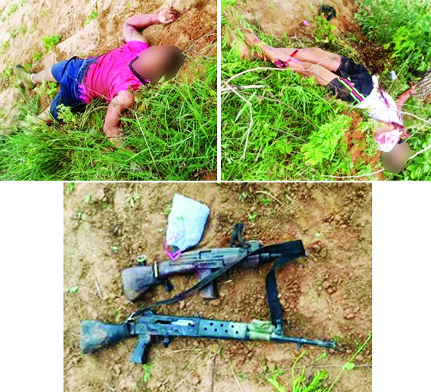 ထိုသို့ နယ်မြေရှင်းလင်းရေးလုပ်ငန်းများ ဆောင်ရွက်နေစဉ် အဆိုပါစက်သုံးဆီဆိုင်၏ အနောက်တောင်ဘက် ငါးမိုင်ခန့်အကွာ ကန်ပေါက် (အရှေ့) ကျေးရွာနှင့် ကျောက်ကန်ကျေးရွာကြားအရောက် PDF အမည်ခံ အကြမ်းဖက်သမား လေးဦး (စိစစ်ဆဲ) က လက်နက်ငယ်များဖြင့် ပစ်ခတ်တိုက်ခိုက်ခဲ့သဖြင့် လုံခြုံရေးတပ်ဖွဲ့ဝင်များက ပြန်လည်ပစ်ခတ်ရှင်းလင်းခဲ့ရာ PDF အမည်ခံ အကြမ်းဖက်သမားနှစ်ဦးအား MA-13 သေနတ်တစ်လက်၊ ၎င်းကျည် ၁၀ တောင့်၊ ကျည်အိမ်တစ်ခု၊ MA- 1 သေနတ်တစ်လက်၊ ၎င်းကျည် ၁၀ တောင့်နှင့် ကျည်အိမ်တစ်ခုတို့နှင့်အတူ အသေပစ်ခတ်ဖမ်းဆီးရမိခဲ့ပြီး ကျန်အကြမ်းဖက်သမားနှစ်ဦးမှာ ထွက်ပြေးလွတ်မြောက်သွားခဲ့ကြောင်း သိရသည်။
