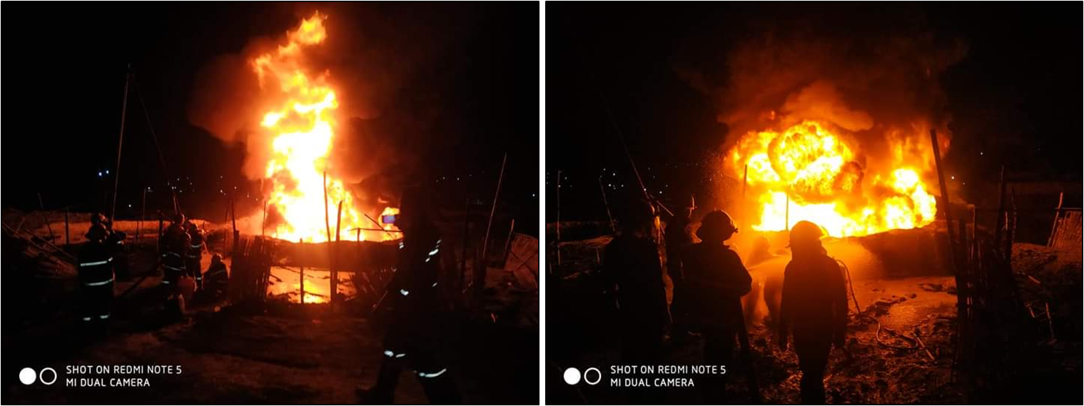 မန္တလေးတိုင်းဒေသကြီး၊ ညောင်ဦးမြို့နယ်၊ တောင်ဘီလေးကျေးရွာ တက်မ ရေနံမြေရှိ “ရွှေသိန်းသန်း” ရေနံတူးဖော်ရေးကုမ္ပဏီဝန်ထမ်း အရာတော်ကျေးရွာနေ လှမျိုး(၃၀)နှစ်သည် အောက်တိုဘာလ ၂၂ ရက် နံနက် ၂ နာရီခွဲက ကုမ္ပဏီပိုင် ရေနံတွင်းများမှ ရေနံများ ခပ်ယူနေစဉ် ခြံစည်းရိုးအနီးရှိ ၈ ပေပတ်လည် အမြင့် ၁၀ ပေခန့် ရေနံကန်မှ မီးစတင်လောင်သည်ကို တွေ့ရှိ၍ သွားရောက်ကြည့်ရှုရာ ရေနံကန်အနီးမှ အမျိုးသား ၁ ဦး ထွက်ပြေးသွားသည်ကို တွေ့ရှိခဲ့ပြီး နံနက် ၅ နာရီခွဲအချိန်တွင် မီးငြိမ်းသွားခဲ့ကြောင်း သိရသည်။