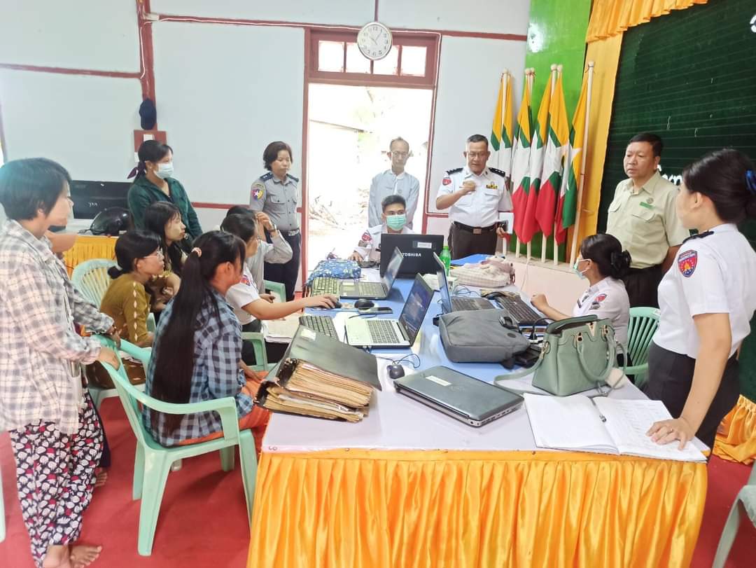 မကွေးတိုင်းဒေသကြီး နတ်မောက်မြို့နယ် မြို့နယ်အထွေထွေအုပ်ချုပ်ရေးဦးစီးဌာနခန်းမ၌ ဌာနဆိုင်ရာ ဝန်ထမ်းများက အိမ်ထောင်စုစာရင်း ပုံစံ (၆၆/၆)များအား ကွန်ပျူတာစာရင်း ရေးသွင်းမှု အခြေအနေများကို မြို့နယ်အုပ်ချုပ်ရေးမှူး ဦးသန့်စင်နှင့် တာဝန်ရှိသူများမှ ယနေ့ နံနက် ၁၀ နာရီက ကြည့်ရှုစစ်ဆေးခဲ့ကြသည်။
