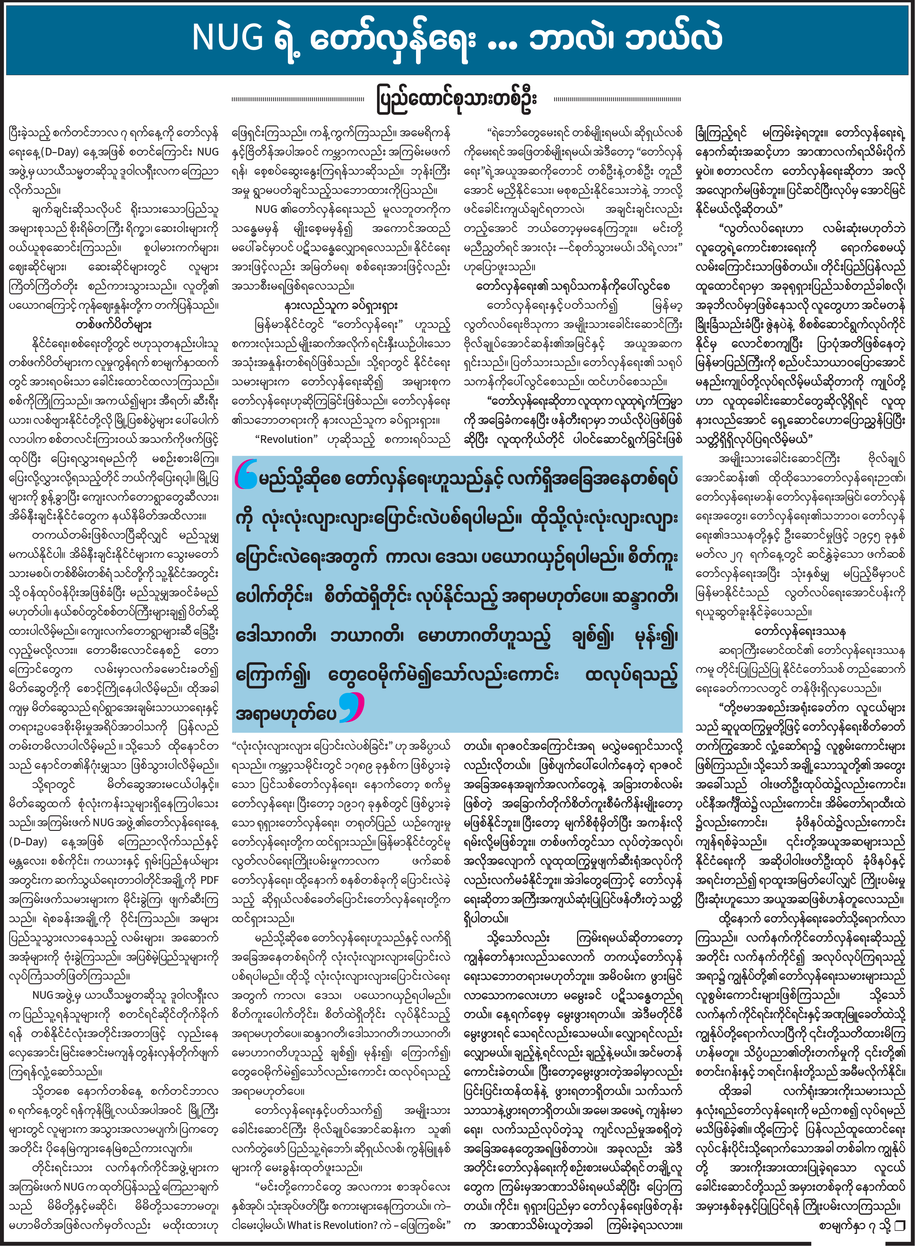 NUG ရဲ့ တော်လှန်ရေး...ဘာလဲ၊ ဘယ်လဲ