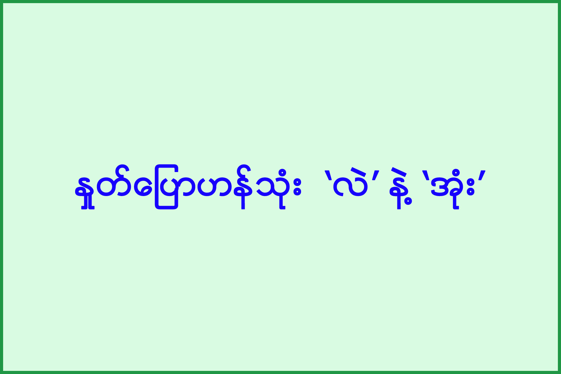 “သူလည်းလာတယ်။ ငါလည်းလာတယ်’ ဆိုတဲ့ စကားမှာပါတဲ့ ‘လည်း ရယ်၊ နေပါဦး၊ လာပါဦးဆိုတဲ့ စကားမှာပါတဲ့ “ဦး” ရယ်၊ အဲဒီနှစ်လုံးပါ ဆရာ”