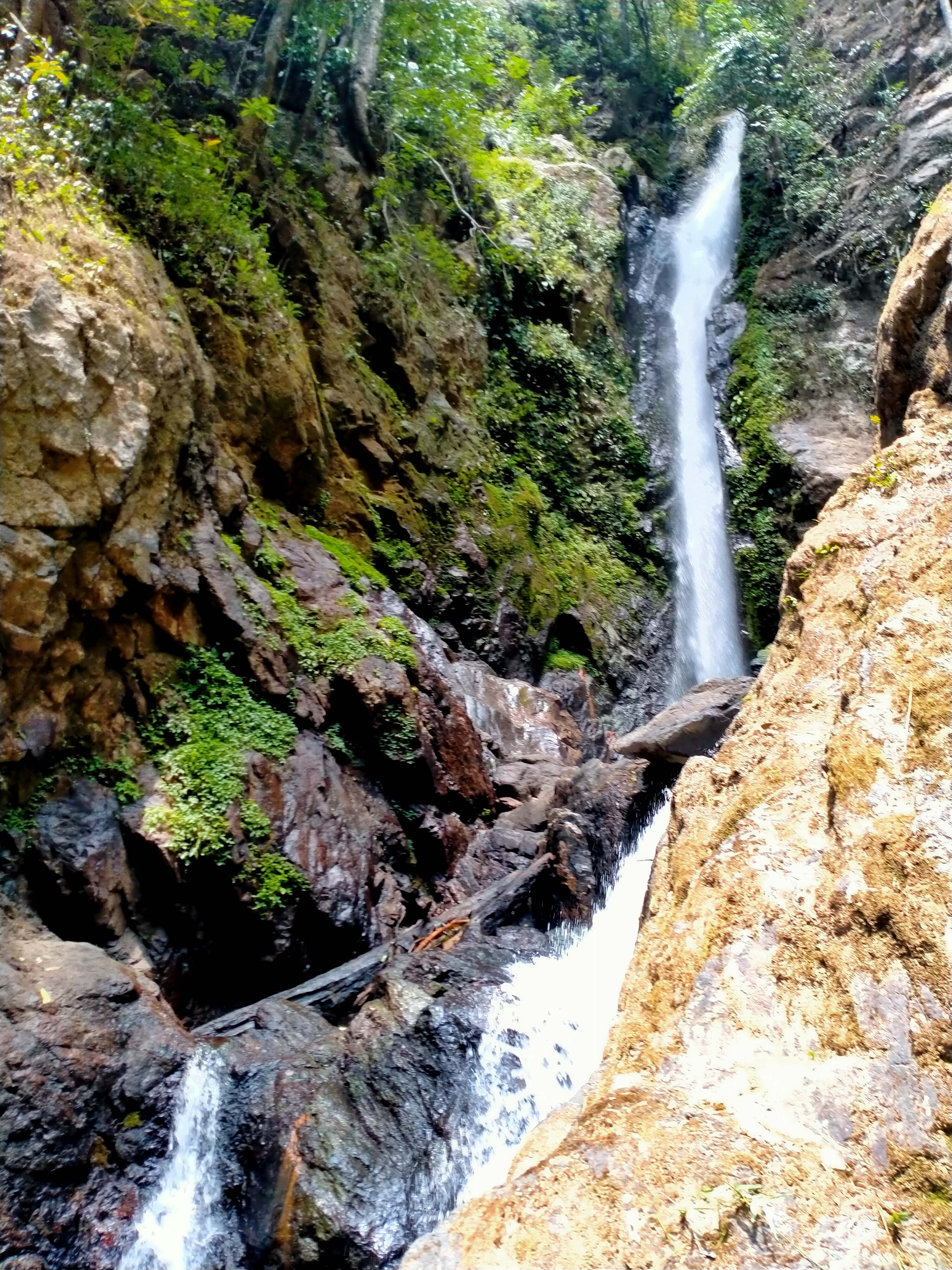 ခြေလျင်ခရီးတွင် သူသူငါငါ ထမင်းထုပ်၊ အဝတ်အထည်အပိုများ ကိုင်ဆွဲလျက် မိသားစုကလေးများ ပိုးလျက် ကျဉ်းမြောင်းသည့် မြေမာတစ်လှည့်၊ ရွံ့မြေတစ်လှည့်၊ ကျောက်တုံးကျောက်ခဲ့များ တစ်လှည့်ဖြစ်နေပြီး ဓားဖြင့် အနည်းငယ်သာရှင်းထားသည့် ချောင်းရိုးလမ်းကလေးအတိုင်း ကလေးငယ်များ သူချီတစ်လှည့်၊ ကိုယ်ချီတစ်လှည့်နှင့်အတူ နားရင်း ဆက်လျှောက်လာခဲ့ကြရာ အချိန်တစ်နာရီခွဲခန့် အကြာ(လမ်းတစ်ဝက်)တွင် အဖွဲ့သားများ၏ ဝမ်းဗိုက်က ပင်ပန်းလာ၍ စတင်အော်မြည်လာတော့သည်။ အဖွဲ့သားများအားလုံးလည်း ဗိုက်ဆာလာပြီးဖြစ်၍ ပါလာကြသည့် ထမင်းထုပ်နှင့် သောက်ရေဘူးများကို မိုင်းလွေရေတံခွန်မှ စိးဆင်းလာခဲ့သည့် ချောင်းအလယ် ကျောက်တုံးများပေါ်တွင် ခင်ကျင်းစားသောက်ပါတော့သည်။ စားသောက်ပြီး အချို့သူများမှာ ရေတံခွန်အရောက် ဆက်မလျှောက်နိုင်ကြောင်းနှင့် လမ်းတစ်ဝက်ခန့်တွင် တည်ရှိနေသည် ရေတံခွန်ငယ်လေးများတွင်သာ အပန်းဖြေရေကစားပြန်ကြမည်ဟု ဆိုခဲ့သော်လည်း စာရေးသူများ ရေတံခွန်ကြီးကို မှတ်တမ်းရယူလိုသည့် စိတ်၊ လူအများ အပန်းဖြေသွားရောက် လည်ပတ်နိုင်သည့် မိုင်းယုမြို့၏ အထင်ကရနေသစ်တစ်ခု ထပ်မံပေါ်ပေါက်လာစေရန်အတွက် စသည့် အတွေးများဖြင့် အဖွဲ့များကို နားနေခိုင်းကာ စာရေးသူနှင့် အဖွဲ့ပါ နောက်တစ်ဦးနှင့်အတူ ရေတံခွန်ကြီး ရှိရာသို့ ရှေ့ပြေးအဖြစ် ချောင်းရိုးအတိုင်း ဆက်သွား၍ရှာဖွေခဲ့ရာ နာရီဝက်ခန့်အကြာတွင် မြင့်မားပြီး အရှိန်ဖြင့် တစ်ဟုန်ထိုး ထိုးဆင်းနေသည့် ကျောက်ဆောင်များအကြားမှ မိုင်းလွေရေတံခွန်ကို တွေ့ရလေတော့သည်။
