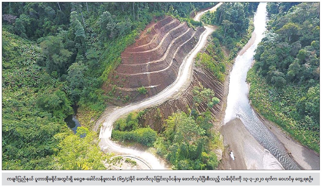 “နယ်စပ်ဒေသနှင့် တိုင်းရင်းသားလူမျိုးများ ဖွံ့ဖြိုးတိုးတက်ရေးဦးစီးဌာနက နယ်စပ်ဒေသ ဖွံ့ဖြိုးရေးလုပ်ငန်း ဆောင်ရွက်ရာမှာ အခြေခံအကျဆုံးဖြစ်တဲ့ လမ်းပန်းဆက်သွယ်မှုကဏ္ဍ ကောင်းမွန်မှုကို အဓိကထား ဆောင်ရွက် လျက်ရှိပါတယ်။ ဒီလို ဆောင်ရွက်တဲ့အခါ ဒေသဖွံ့ဖြိုးရေးအတွက်သာမက နိုင်ငံတော် လုံခြုံရေးအတွက်ပါ အရေးပါတဲ့ နိုင်ငံ နယ်နိမိတ်တစ်လျှောက် နယ်စပ်လမ်းများကို အကောင်အထည်ဖော် ဆောင်ရွက်လျက်ရှိပါတယ်။ သိသာထင်ရှားတဲ့ လမ်းအနေနဲ့ ကချင်ပြည်နယ် ပူတာအိုခရိုင်အတွင်းမှာရှိတဲ့ မဂ္ဂဇ - ခေါင်လန်ဖူး လမ်း ၆၅ မိုင် ၄ ဖာလုံ ဖောက်လုပ်ခြင်း လုပ်ငန်း ဖြစ်ပါတယ်။ ခေါင်လန်ဖူးဒေသဟာ ဧရိယာ စတုရန်းမိုင် ၂၀၀၀ ခန့် ကျယ်ဝန်းပြီး လူဦးရေ ၁၅၀၀၀ ခန့်သာရှိတဲ့အတွက် လူဦးရေသိပ်သည်းဆနည်းပါးတဲ့ ဒေသဖြစ်ပါတယ်။ သို့သော် ရာသီဥတုပြင်းထန်ဆိုးရွားခြင်း လမ်းပန်းဆက်သွယ်မှု ခက်ခဲခြင်းများကြောင့် နှစ်စဉ်ဒေသတွင်း စားနပ်ရိက္ခာ လုံလောက်မှုမရှိဘဲ ဒေသဖွံ့ဖြိုးမှု အဘက်ဘက်က နောက်ကျကျန်နေတဲ့ ဒေသဖြစ်ပါတယ်။ ဒါ့ကြောင့်မို့ နယ်စပ်ရေးရာဝန်ကြီးဌာနက တပ်မတော်၊ ဌာနေ ပြည်သူ့စစ်တို့နဲ့ ပူးပေါင်းပြီး ၂၀၁၈-၂၀၁၉ ဘဏ္ဍာနှစ် တတိယ စီမံကိန်းကာလတွင် မဂ္ဂဇ-ခေါင်လန်ဖူး လမ်းလုပ်ငန်း စီမံကိန်းရဲ့ အခက်အခဲဆုံးဖြစ်တဲ့ အမြင့်ပေ ၇၈၀၀ ခန့်ရှိ ဆန်းလွတ်ချက်ကျောက်တောင်ထိပ် ၃၃ မိုင် ၆ ဖာလုံလမ်း ဖောက်လုပ်နိုင်ခဲ့ပါတယ်။ လုပ်ငန်းတွေအရှိန်အဟုန်နဲ့ ဆက်လက်ဆောင်ရွက်ခဲ့ရာ စတုတ္ထနှစ်အတွင်းမှာ ဆန်းလွတ်ချက် တောင်ထိပ်ကနေ မေခမြစ်ကမ်းပါးအထိ ၄၃ မိုင် ၂ ဖာလုံလမ်းဖောက်နိုင် ခဲ့ပါပြီ”ဟု နယ်စပ်ဒေသနှင့် တိုင်းရင်းသား လူမျိုးများ ဖွံ့ဖြိုးတိုးတက်ရေး ဦးစီးဌာန ညွှန်ကြားရေးမှူးချုပ် ဦးရဲနိုင်က ပြောသည်။