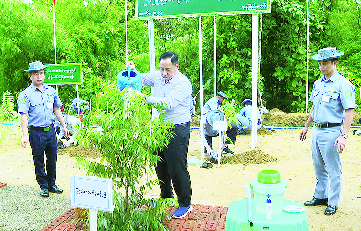 အခမ်းအနားတွင် နိုင်ငံတော်စီမံအုပ်ချုပ်ရေးကောင်စီအဖွဲ့ဝင် နယ်စပ်ရေးရာဝန်ကြီးဌာန ပြည်ထောင်စုဝန်ကြီး ဒုတိယဗိုလ်ချုပ်ကြီး ရာပြည့်က အမှာစကားပြောကြားကာ ကံ့ကော်ပင်ကို စတင်စိုက်ပျိုးပေးပြီး ဒုတိယဝန်ကြီး ဗိုလ်ချုပ်ဖြိုးသန့်၊ အမြဲတမ်းအတွင်းဝန်၊ ဌာနဆိုင်ရာ တာဝန်ရှိသူများ၊ အရာထမ်း၊ အမှုထမ်းများက ရတနာတန်းဝင်ပင်၊ နှစ်ရှည်ပင်နှင့် အရိပ်ရ လေကာပင်များကို အမျိုးသားရေးလှုပ်ရှားမှုအသွင်ဖြင့် စုပေါင်းစိုက်ပျိုးနေမှုကို လှည့်လည်ကြည့်ရှု အားပေးသည်။