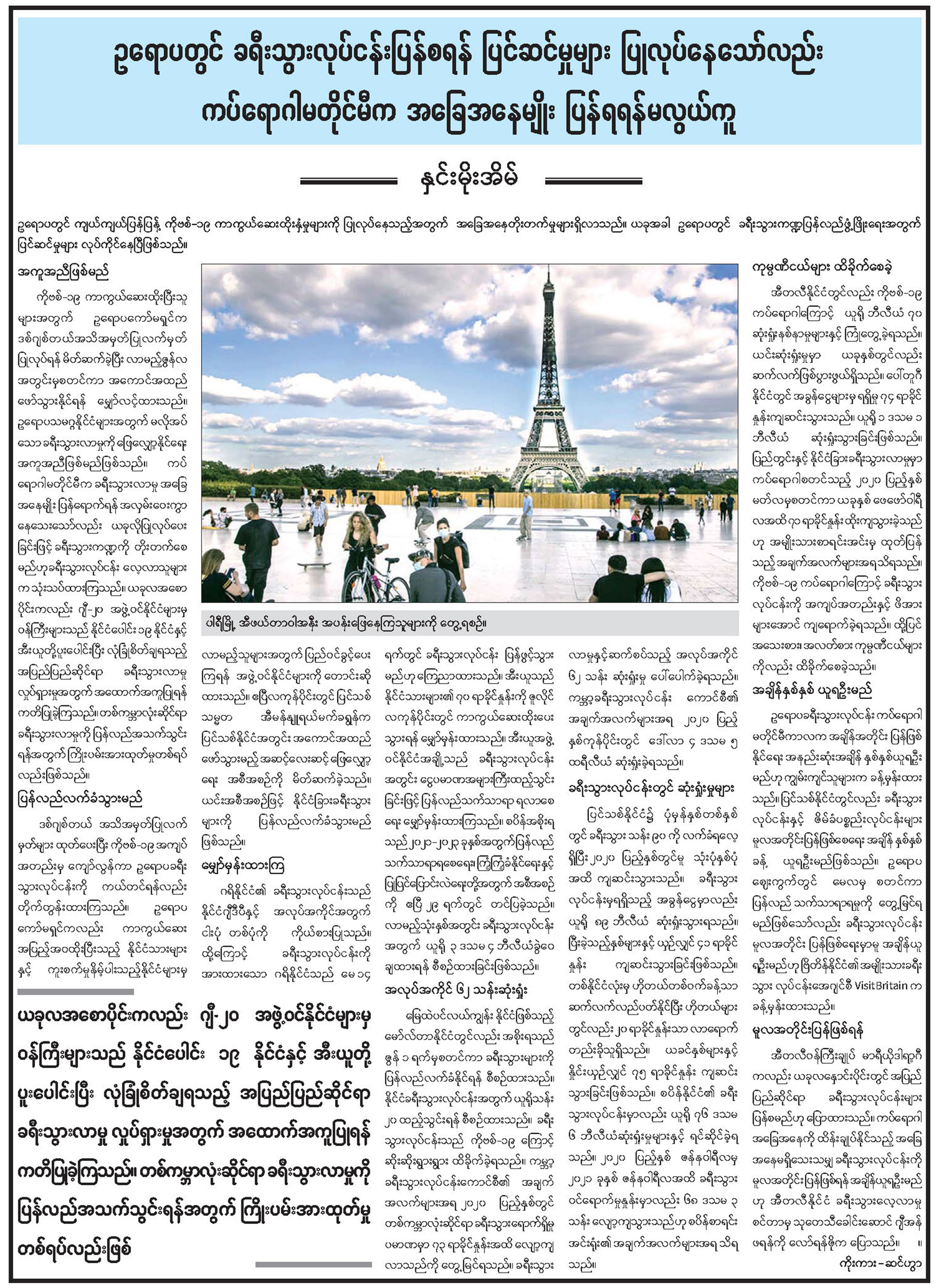 ဉရောပတွင် ခရီးသွားလုပ်ငန်းပြန်စရန် ပြင်ဆင်မှုများ ပြုလုပ်နေသော်လည်း ကပ်ရောဂါမတိုင်မီက အခြေအနေမျိုး ပြန်ရရန်မလွယ်ကူ