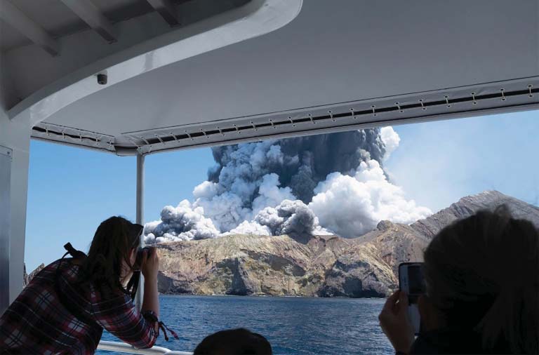 နယူးဇီလန်နိုင်ငံရှိ ကမ္ဘာလှည့်ခရီးသွားများနှင့် ပြည့်နှက်နေသည့်ကျွန်းတွင် မီးတောင်တစ်ခုပေါက်ကွဲခဲ့ရာ ခရီးသွား ငါးဦးထက်မနည်း သေဆုံးခဲ့ပြီး ခရီးသွားနှစ်ဒါဇင်ခန့် ဒီဇင်ဘာ ၉ ရက်တွင် သောင်တင်နေခဲ့ရသည်။