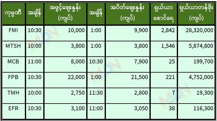 (Source - Yangon Stock Exchange)