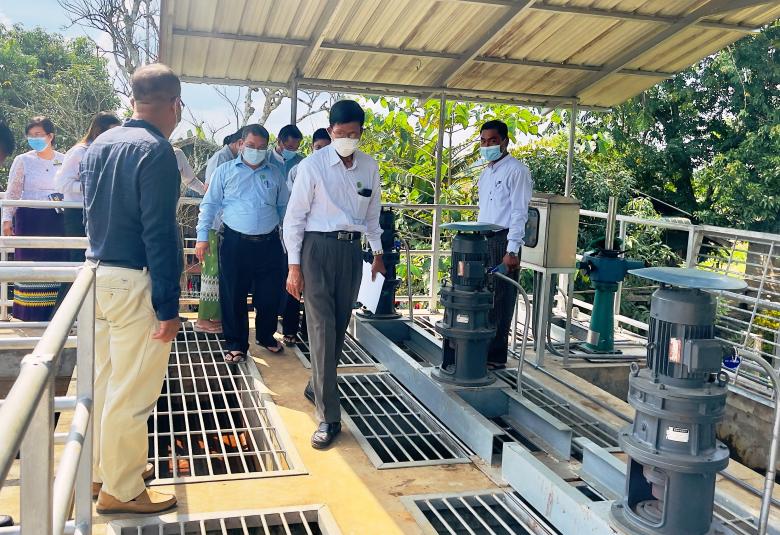 ယင်းနောက်  ဒုတိယဝန်ကြီးသည် တာဝန်ရှိသူများနှင့်အတူ ပဲခူးမြို့ ရေပေးရေးလုပ်ငန်းခွင် သို့ ရောက်ရှိရာ ရေမီတာတိုးချဲ့တပ်ဆင်နိုင်ရေး၊ လုပ်ငန်းများစဉ်ဆက်မပြတ်လည်ပတ်နိုင်ရေး၊ စမ်းသပ် လည်ပတ်နေမှုများ အောင်မြင်အောင်ဆောင်ရွက်ကြရေးတို့နှင့် စပ်လျဉ်း၍ လိုအပ်သည်များ မှာကြား ပြီး အကြိုရေစစ်ကန်တည်ဆောက်ပြီးစီးမှုနှင့် လုပ်ငန်းလည်ပတ်ဆောင်ရွက်နေမှုများကို ကြည့်ရှု သည်။
