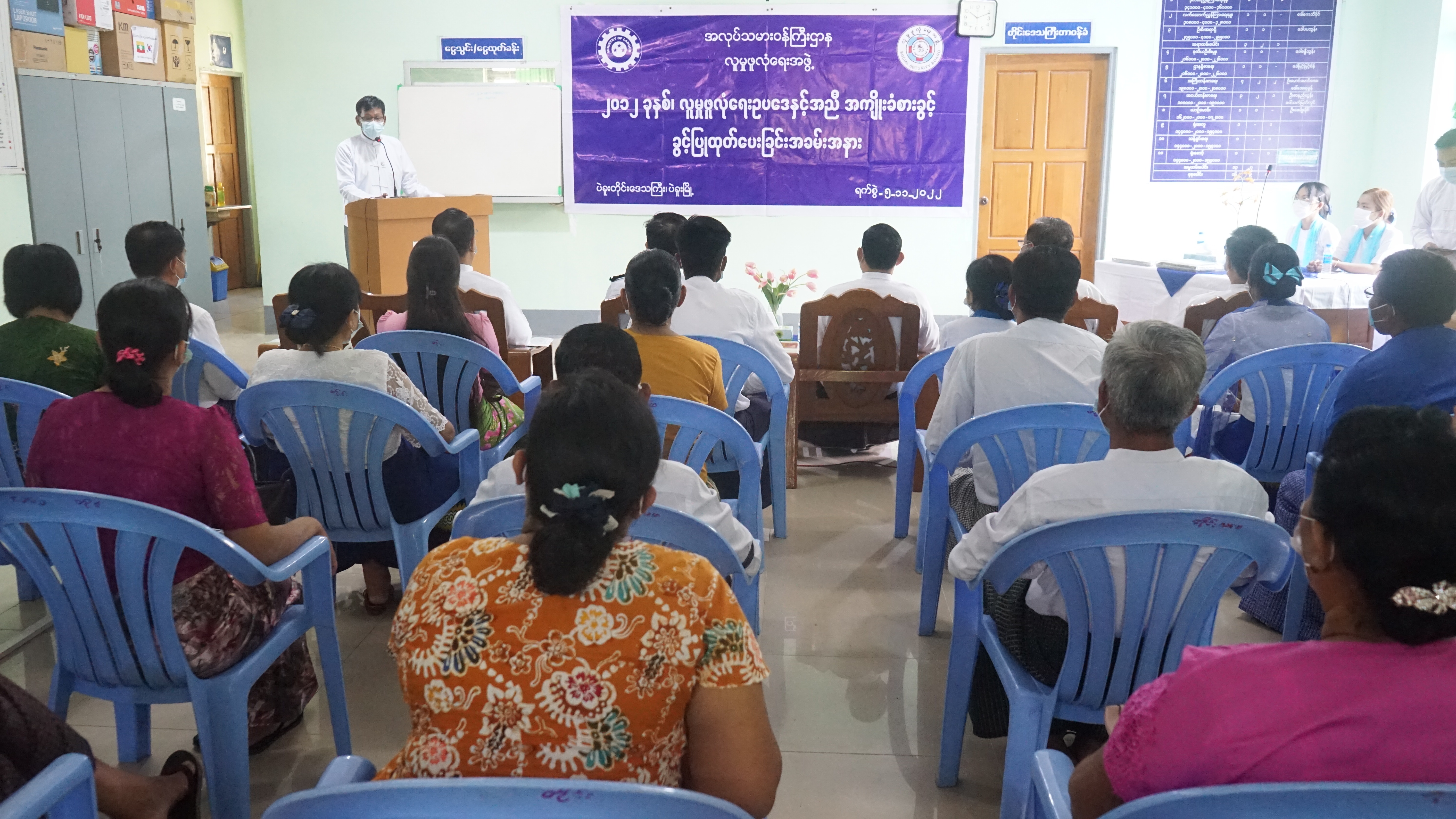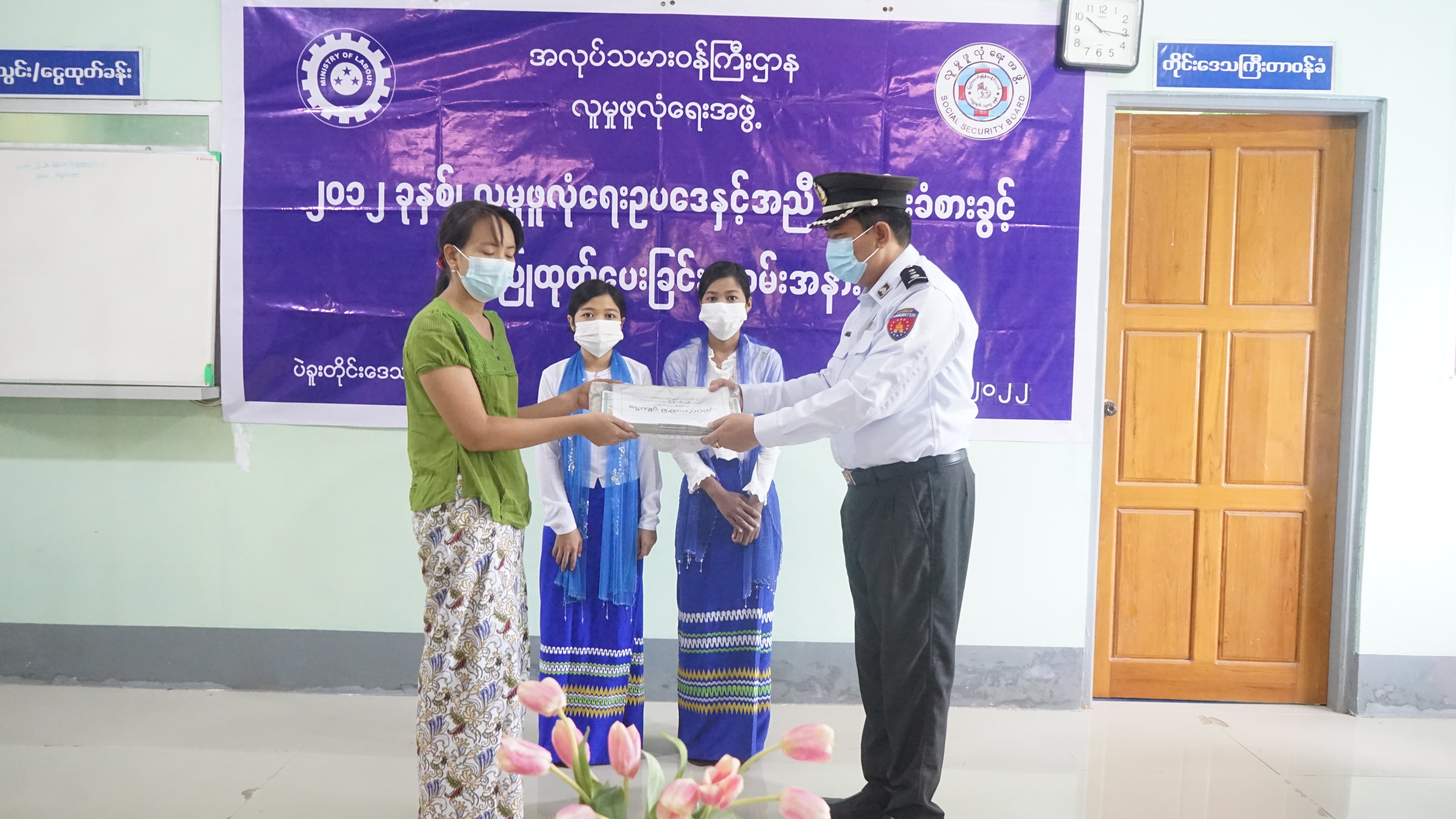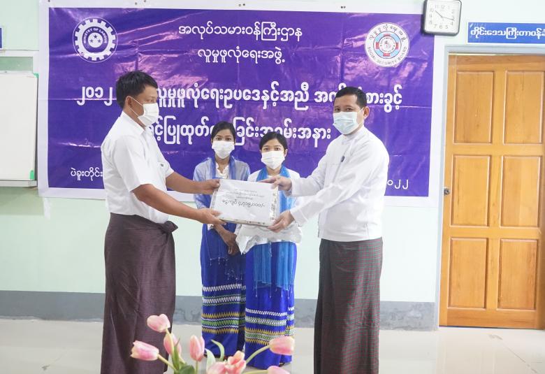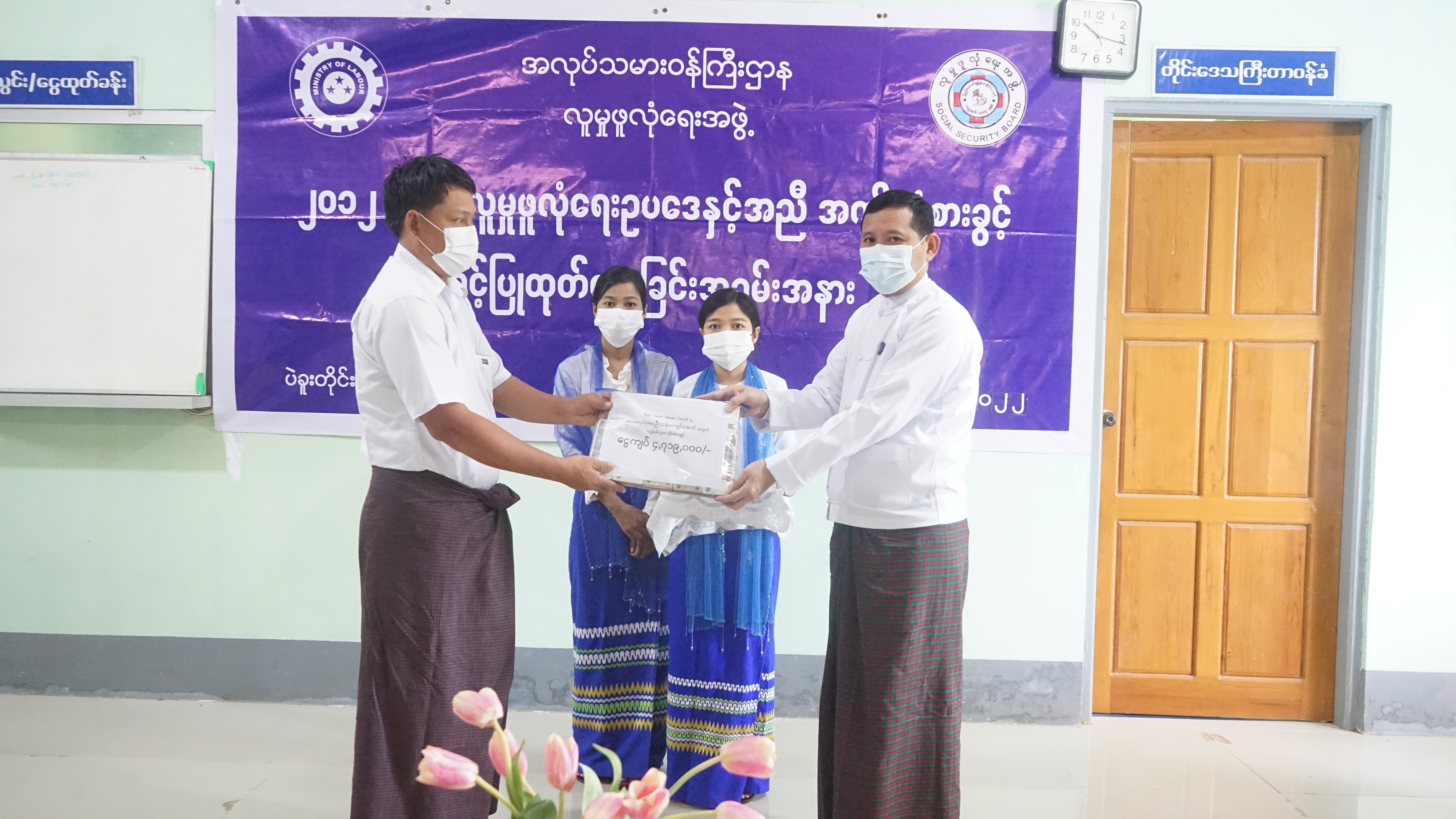 ရှေးဦးစွာ ပဲခူးတိုင်းဒေသကြီး တာဝန်ခံအရာရှိ ဒုတိယညွှန်ကြားရေးမှူး ဦးဝင်းစိုးက ၂၀၁၂ ခုနှစ် လူမှုဖူလုံရေးဥပဒေပါ အကျိုးခံစားခွင့်များအကြောင်း ရှင်းလင်းပြောကြားပြီး တိုင်းဒေသကြီး လူမှုရေးရာဝန်ကြီး ဦးအောင်မင်းက မြို့နယ်လျှပ်စစ်ဓာတ်အား ပို့လွှတ်ရေးနှင့် ကွပ်ကဲရေးဦးစီးဌာန၊ မဟာဓာတ်အားလိုင်းမှူးရုံး (ကမာနတ်)မှ အာမခံအလုပ်သမား ဦးစိုးသီဟဦး၏ လုပ်ငန်းခွင် ထိခိုက်သေဆုံးခြင်းအတွက် ကျန်ရစ်သူ အကျိုးခံစားခွင့် ငွေကျပ် ၉၉,၀၀,၀၀၀ ကို ဇနီးဖြစ်သူ ဒေါ်ဆွေဆွေဦးအား လည်းကောင်း၊ တိုင်းရင်းသားရေးရာဝန်ကြီး ဦးစောလင်းအောင်က ပဲခူးစက်မှုဇုန် Bago Sports Gloves Co., Ltd စက်ရုံမှ အာမခံအလုပ်သမား ဦးသန်းကျော်အောင်၏ လုပ်ငန်းခွင် ထိခိုက်သေဆုံးခြင်းအတွက် ကျန်ရစ်သူအကျိုးခံစားခွင့် ကျပ် ၄၇,၁၉,၀၀၀ ကို ဖခင်ဖြစ်သူ ဦးအောင်မျိုးလွင်အား လည်းကောင်း ပေးအပ်သည်။ ယင်းနောက် ပဲခူးမြို့ မဟာဓာတ်အားလိုင်းမှူးရုံး (ကမာနတ်)မှ ဒုတိယဦးစီးမှူး ဒေါ်သီတာထွန်းက ကျန်ရစ်သူ အကျိုးခံစားခွင့်ကိုယ်စား ကျေးဇူးတင်စကား ပြောကြားခဲ့ကြောင်း သိရသည်။