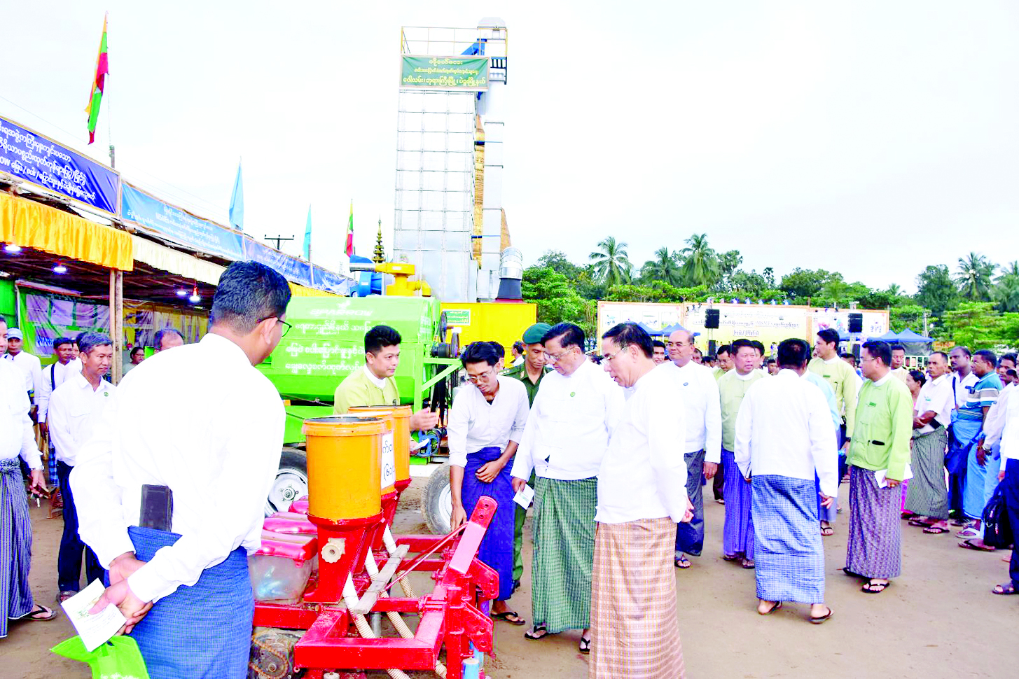 ထို့နောက် ပြည်ထောင်စုဝန်ကြီးနှင့် တိုင်းဒေသကြီးဝန်ကြီးချုပ်တို့သည် ပဲခူးတိုင်းဒေသကြီး အတွင်းမှ ထုတ်လုပ်၍ ပြည်နယ်နှင့် တိုင်းဒေသကြီးများသို့ ဖြန့်ဖြူးပေးလျက်ရှိသည့် လယ်ယာသုံး စက်ကိရိယာ ပြခန်းများကို လှည့်လည်ကြည့်ရှုအားပေးရာ ပြခန်းအလိုက် လယ်ယာသုံးစက်ကိရိယာ ထုတ်လုပ်သူများက ရှင်းလင်းပြောကြားသည်။